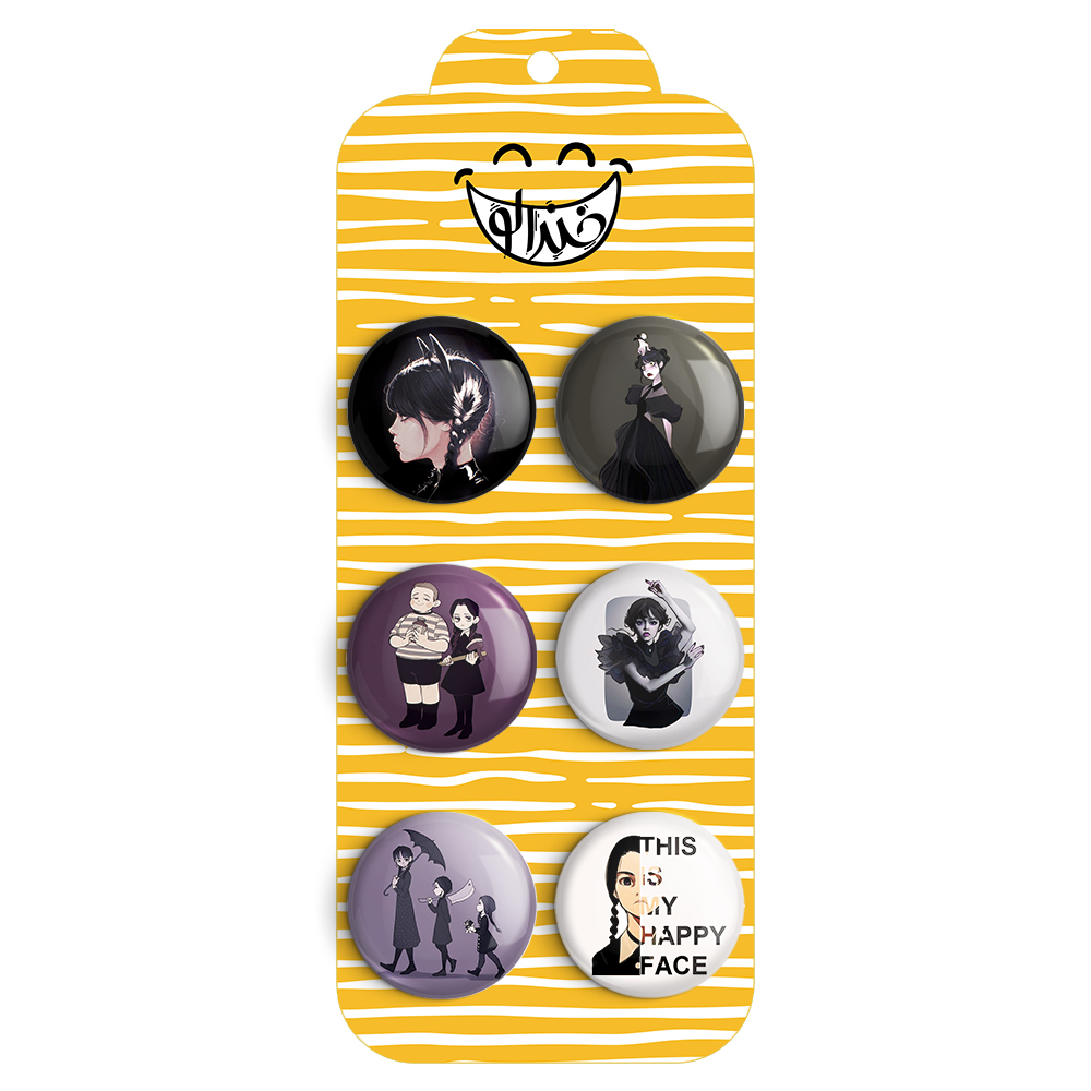 مجموعه 6 عددی پیکسل خندالو طرح سریال ونزدی (wednesday) با روکش سلفون حرارتی براق ضدخش و قطعه پشتی رنگی تولید شده است. قطعات پشتی از میان 6 رنگ سفید، مشکی، صورتی، زرد، آبی و قرمز که با توجه به نوع و رنگبندی طرح روی پیکسل انتخاب شده اند تولید می شود و در هر بسته بندی مطابق عکس محصول می باشد.