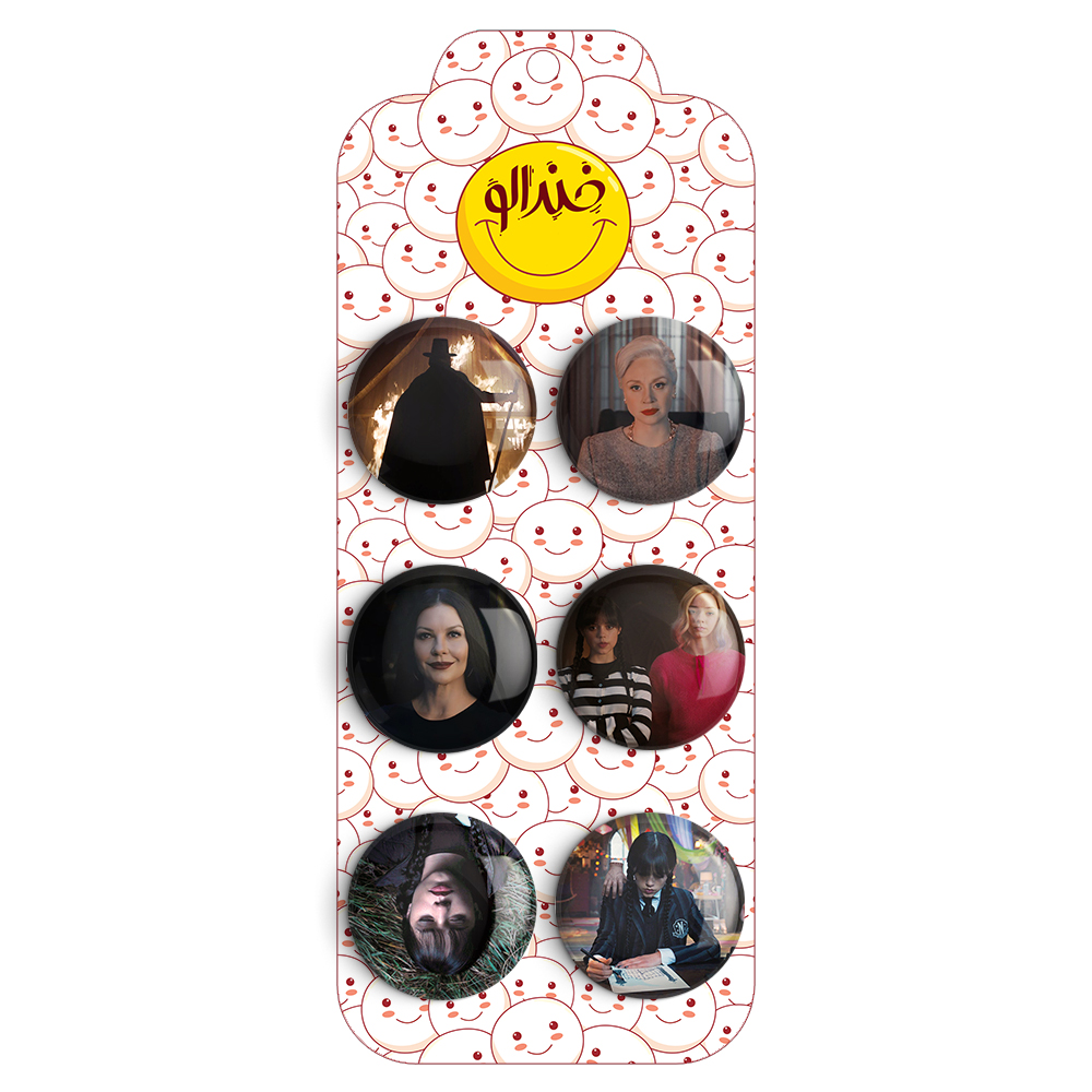 مجموعه 6 عددی پیکسل خندالو طرح سریال ونزدی (wednesday) با روکش سلفون حرارتی براق ضدخش و قطعه پشتی رنگی تولید شده است. قطعات پشتی از میان 6 رنگ سفید، مشکی، صورتی، زرد، آبی و قرمز که با توجه به نوع و رنگبندی طرح روی پیکسل انتخاب شده اند تولید می شود و در هر بسته بندی مطابق عکس محصول می باشد.