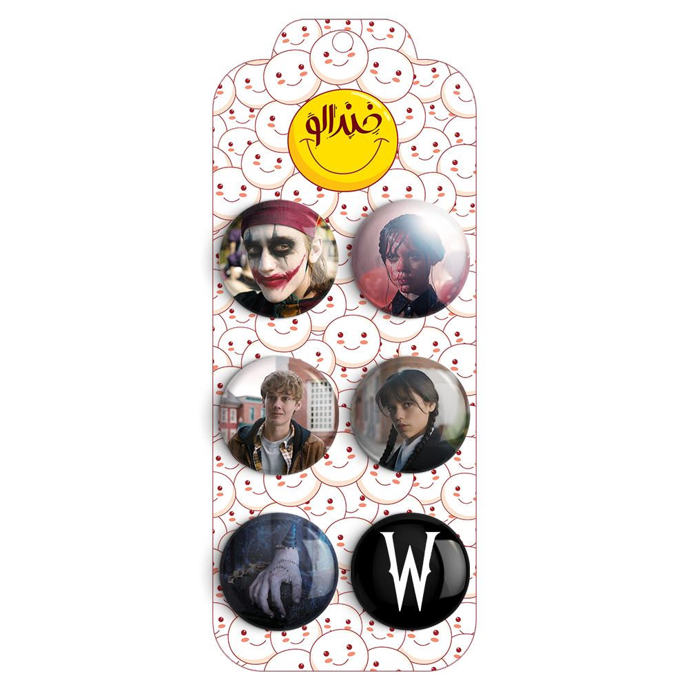 مجموعه 6 عددی پیکسل خندالو طرح سریال ونزدی (wednesday) با روکش سلفون حرارتی براق ضدخش و قطعه پشتی رنگی تولید شده است. قطعات پشتی از میان 6 رنگ سفید، مشکی، صورتی، زرد، آبی و قرمز که با توجه به نوع و رنگبندی طرح روی پیکسل انتخاب شده اند تولید می شود و در هر بسته بندی مطابق عکس محصول می باشد.