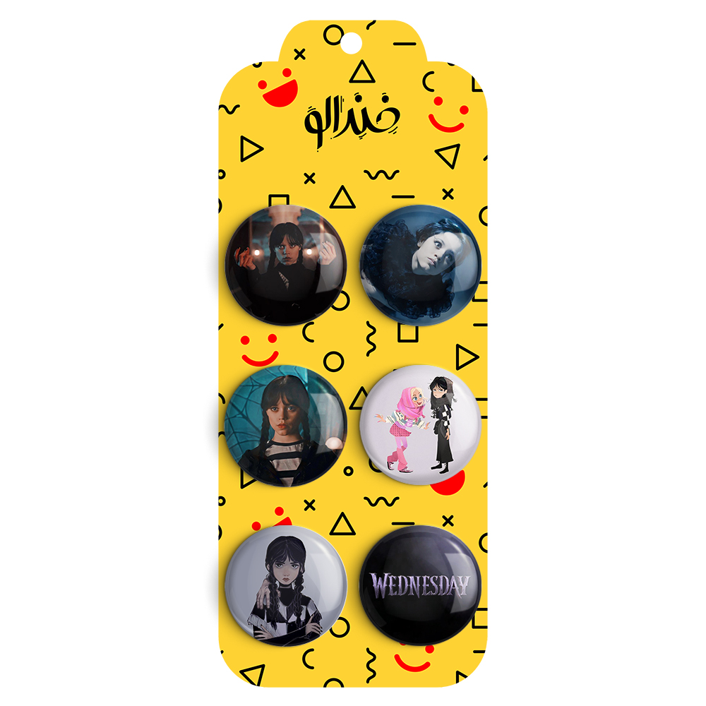 مجموعه 6 عددی پیکسل خندالو طرح سریال ونزدی (wednesday) با روکش سلفون حرارتی براق ضدخش و قطعه پشتی رنگی تولید شده است. قطعات پشتی از میان 6 رنگ سفید، مشکی، صورتی، زرد، آبی و قرمز که با توجه به نوع و رنگبندی طرح روی پیکسل انتخاب شده اند تولید می شود و در هر بسته بندی مطابق عکس محصول می باشد.