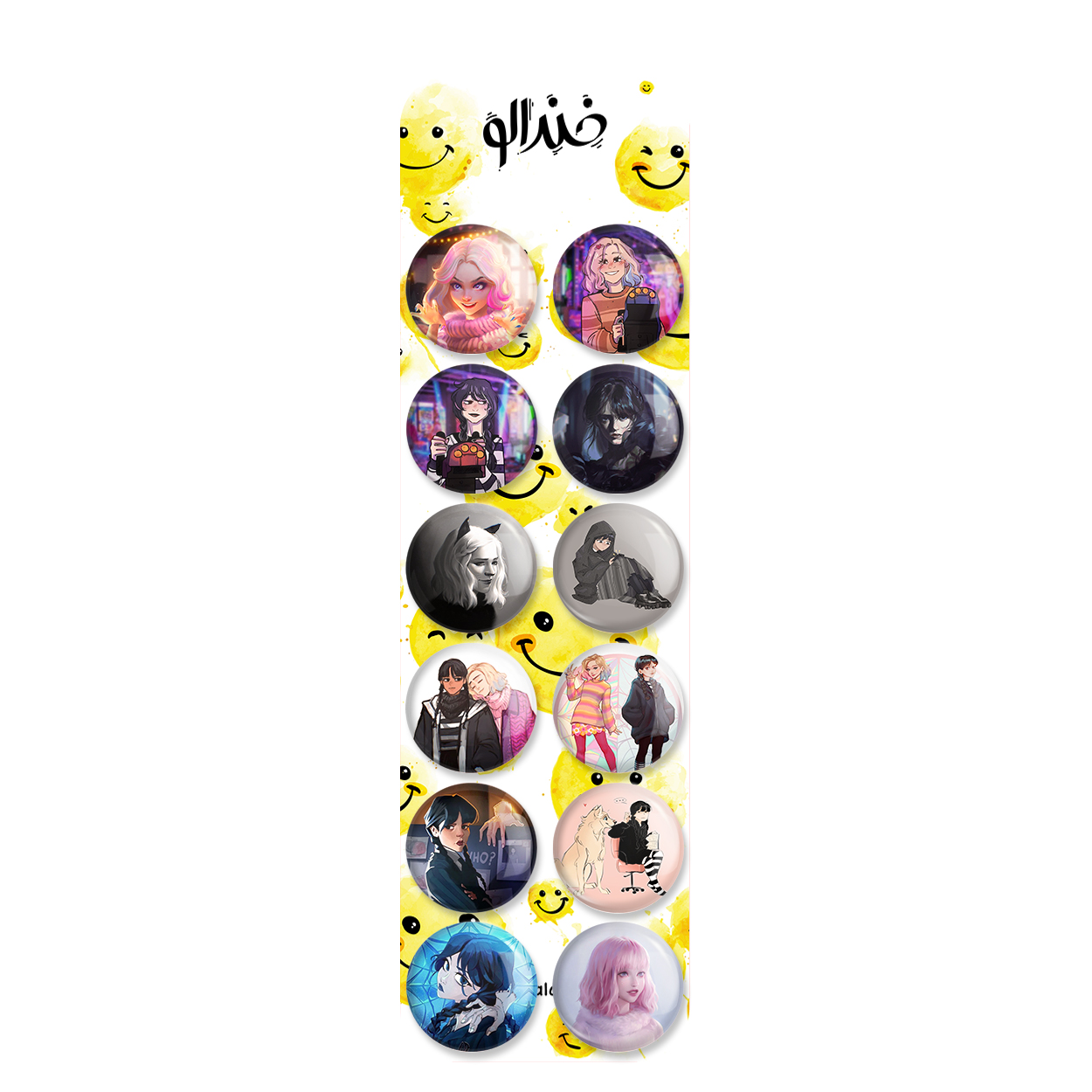 پک 12 عددی پیکسل خندالو طرح سریال ونزدی (wednesday) با روکش سلفون حرارتی براق ضدخش و قطعه پشتی رنگی تولید شده است. قطعات پشتی از میان 6 رنگ سفید، مشکی، صورتی، زرد، آبی و قرمز که با توجه به نوع و رنگبندی طرح روی پیکسل انتخاب شده اند تولید می شود و در هر بسته بندی مطابق عکس محصول می باشد. قطعات پلاستیکی پشت پیکسل با سوزن یک تکه ثابت و بدون لغزش و جا به جایی، ایستایی بسیار بهتری نسبت به پشتی فلزی پیکسل دارند که این مهم در تولید این محصول نیز رعایت شده است.