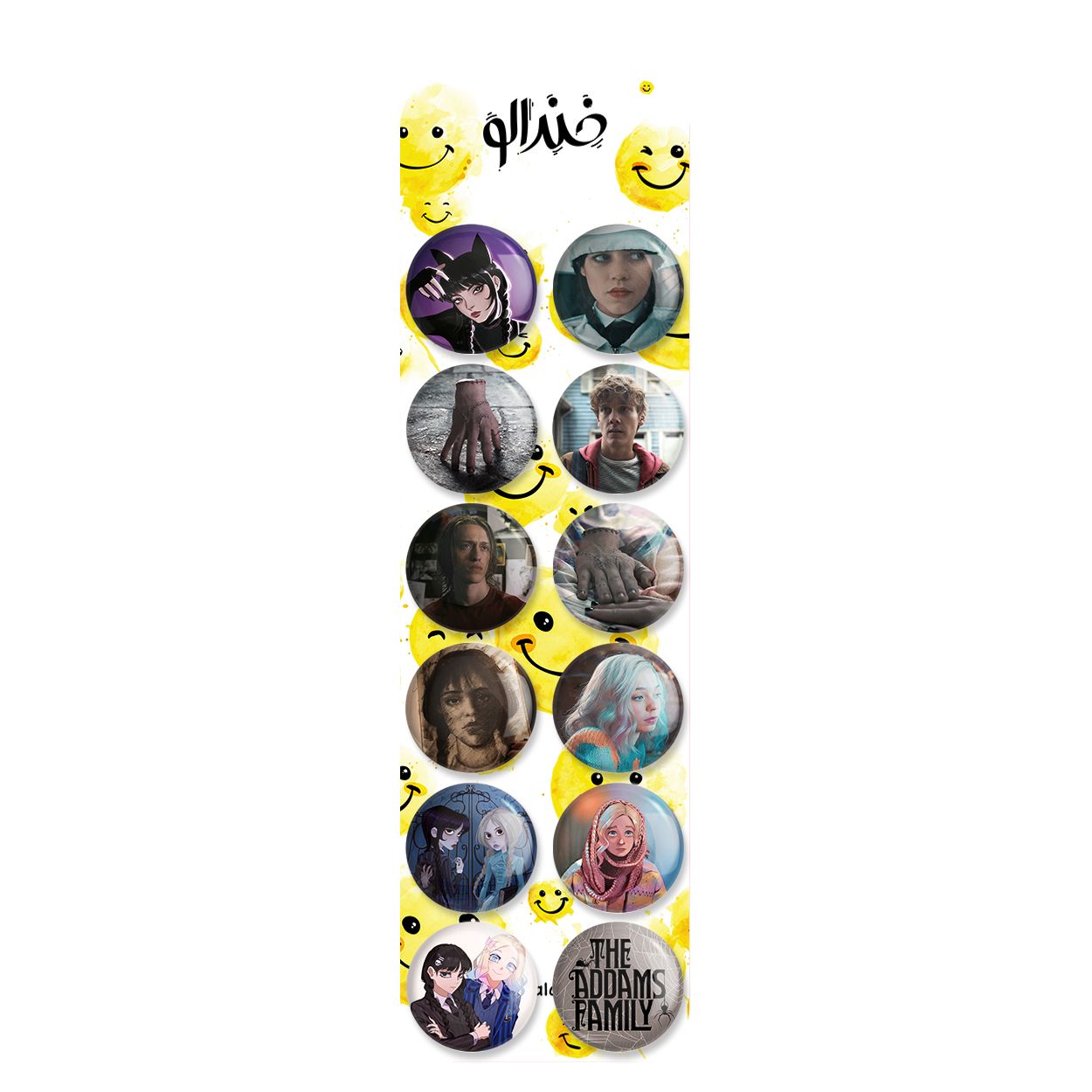 پک 12 عددی پیکسل خندالو طرح سریال ونزدی (wednesday) با روکش سلفون حرارتی براق ضدخش و قطعه پشتی رنگی تولید شده است. قطعات پشتی از میان 6 رنگ سفید، مشکی، صورتی، زرد، آبی و قرمز که با توجه به نوع و رنگبندی طرح روی پیکسل انتخاب شده اند تولید می شود و در هر بسته بندی مطابق عکس محصول می باشد. قطعات پلاستیکی پشت پیکسل با سوزن یک تکه ثابت و بدون لغزش و جا به جایی، ایستایی بسیار بهتری نسبت به پشتی فلزی پیکسل دارند که این مهم در تولید این محصول نیز رعایت شده است.