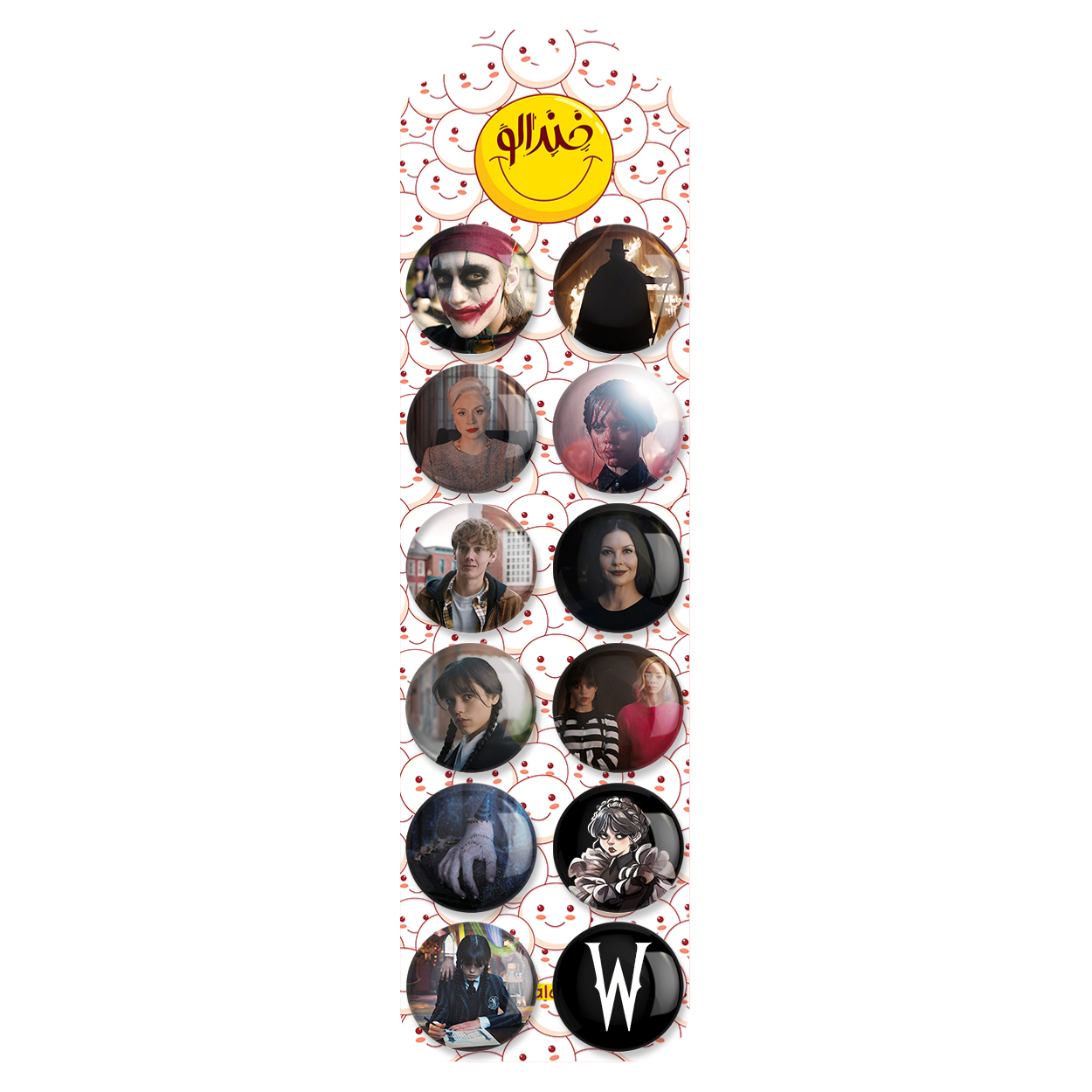 پک 12 عددی پیکسل خندالو طرح سریال ونزدی (wednesday) با روکش سلفون حرارتی براق ضدخش و قطعه پشتی رنگی تولید شده است. قطعات پشتی از میان 6 رنگ سفید، مشکی، صورتی، زرد، آبی و قرمز که با توجه به نوع و رنگبندی طرح روی پیکسل انتخاب شده اند تولید می شود و در هر بسته بندی مطابق عکس محصول می باشد. قطعات پلاستیکی پشت پیکسل با سوزن یک تکه ثابت و بدون لغزش و جا به جایی، ایستایی بسیار بهتری نسبت به پشتی فلزی پیکسل دارند که این مهم در تولید این محصول نیز رعایت شده است.