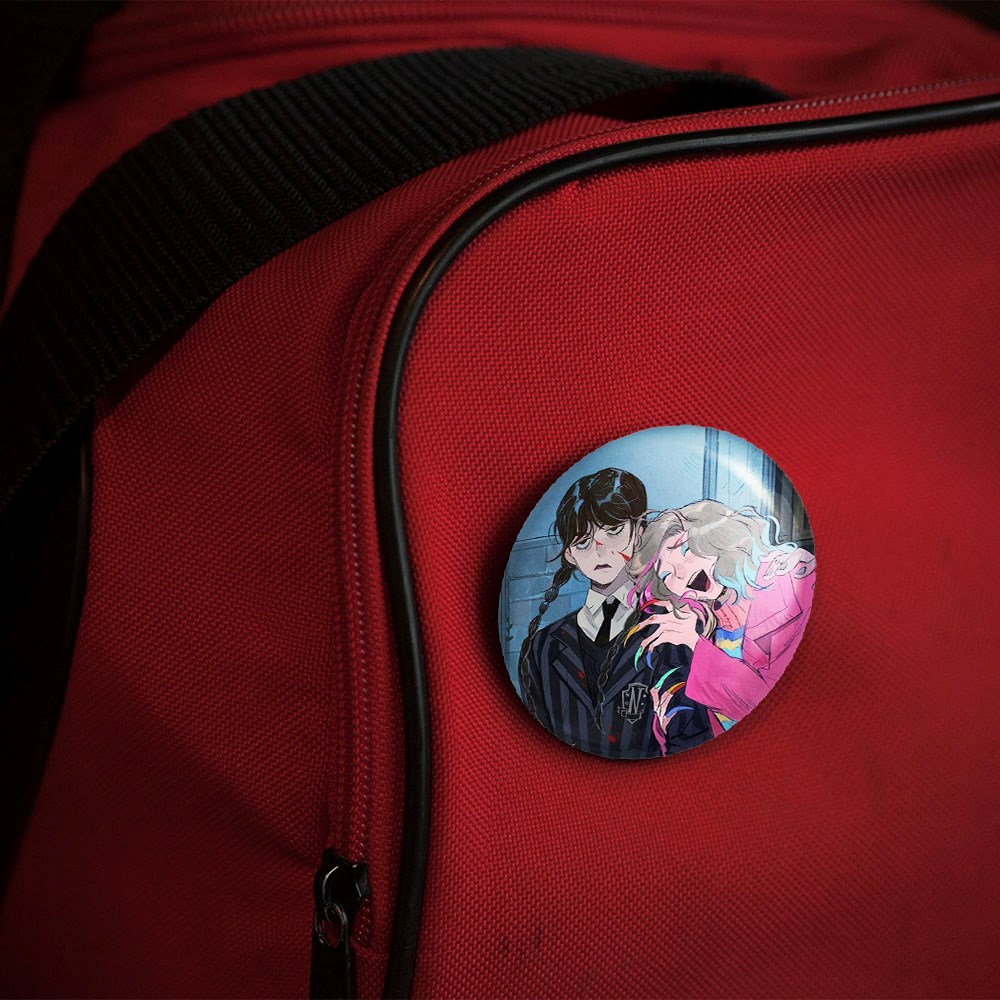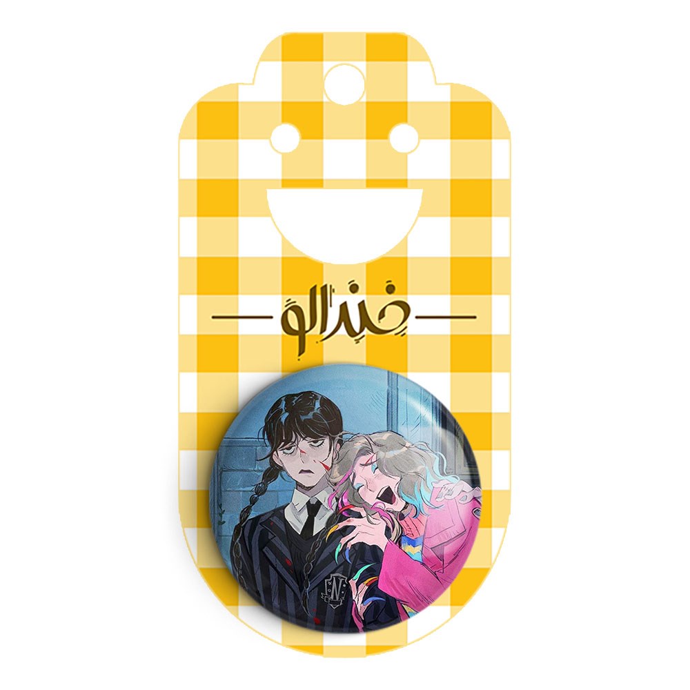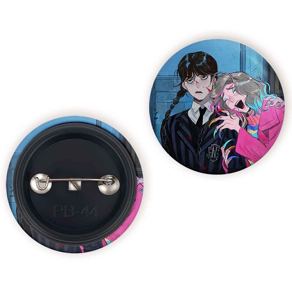 پیکسل 44 میلی متری سریال ونزدی Wednesday خندالو با روکش سلفون حرارتی مات مخملی ضدخش و قطعه پشتی رنگی تولید شده است.پلاستیکی پشت پیکسل با سوزن یک تکه ثابت و بدون لغزش و جا به جایی، ایستایی بسیار بهتری نسبت به پشتی فلزی پیکسل دارند که این مهم در تولید این محصول نیز رعایت شده است.