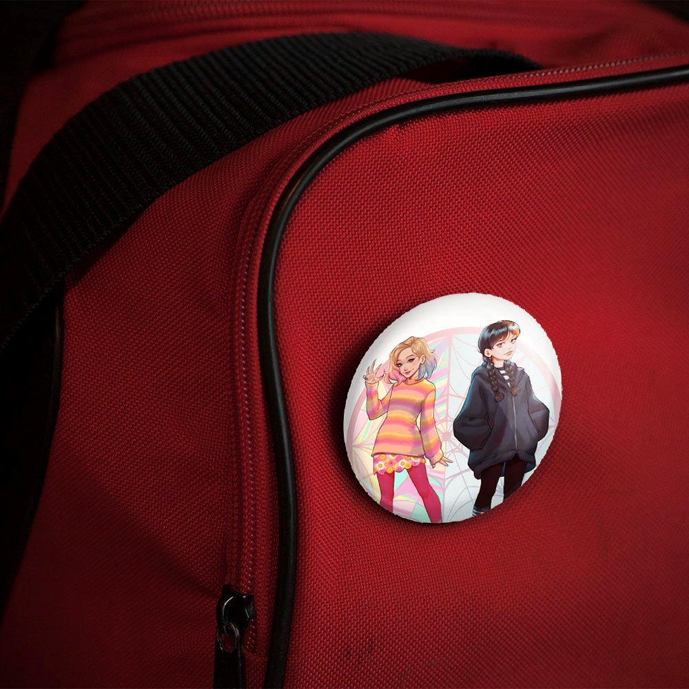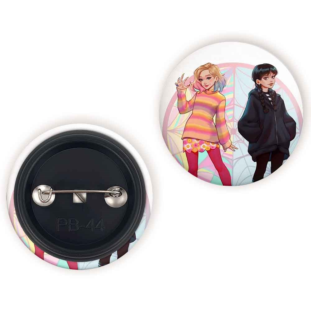 پیکسل 44 میلی متری سریال ونزدی Wednesday خندالو با روکش سلفون حرارتی مات مخملی ضدخش و قطعه پشتی رنگی تولید شده است.پلاستیکی پشت پیکسل با سوزن یک تکه ثابت و بدون لغزش و جا به جایی، ایستایی بسیار بهتری نسبت به پشتی فلزی پیکسل دارند که این مهم در تولید این محصول نیز رعایت شده است.