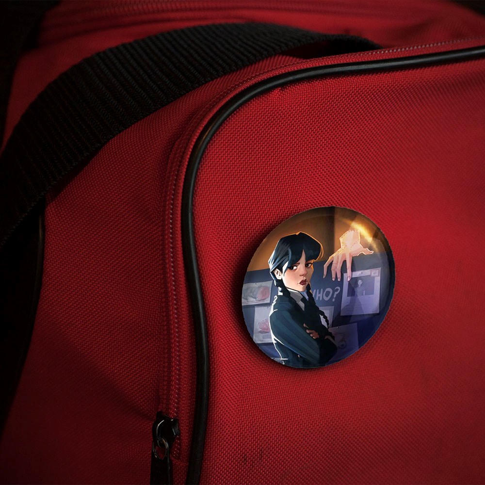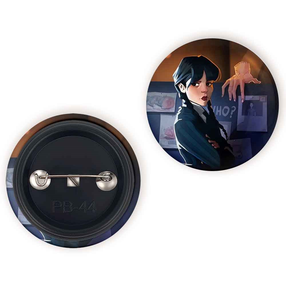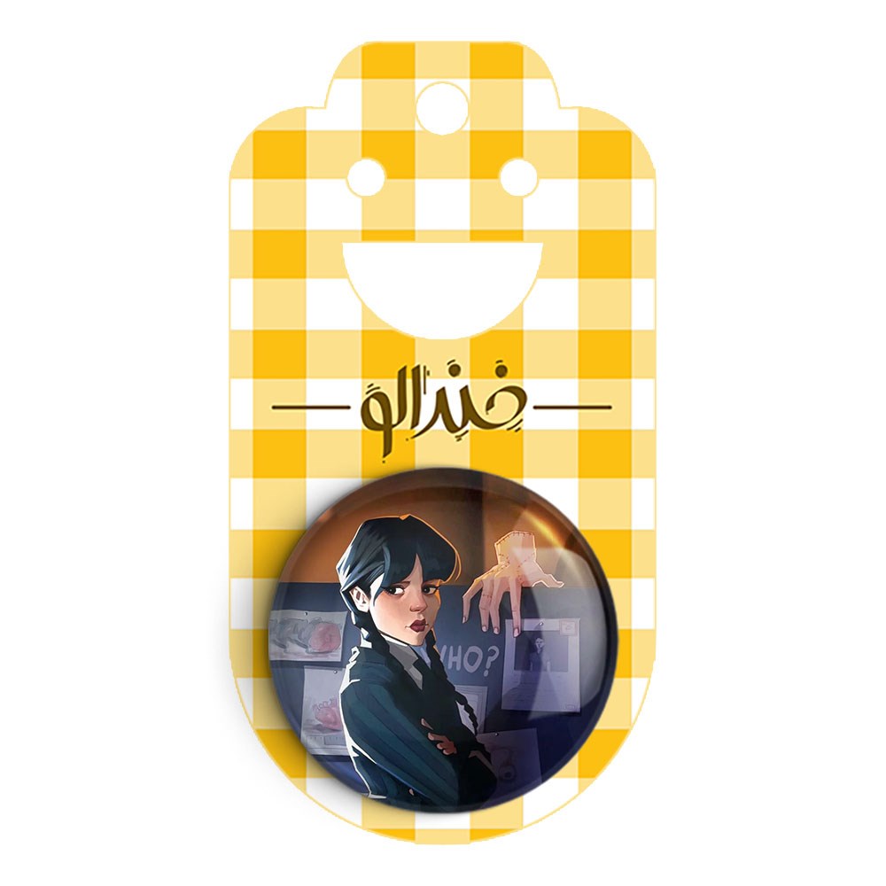 پیکسل 44 میلی متری سریال ونزدی Wednesday خندالو با روکش سلفون حرارتی مات مخملی ضدخش و قطعه پشتی رنگی تولید شده است.پلاستیکی پشت پیکسل با سوزن یک تکه ثابت و بدون لغزش و جا به جایی، ایستایی بسیار بهتری نسبت به پشتی فلزی پیکسل دارند که این مهم در تولید این محصول نیز رعایت شده است.