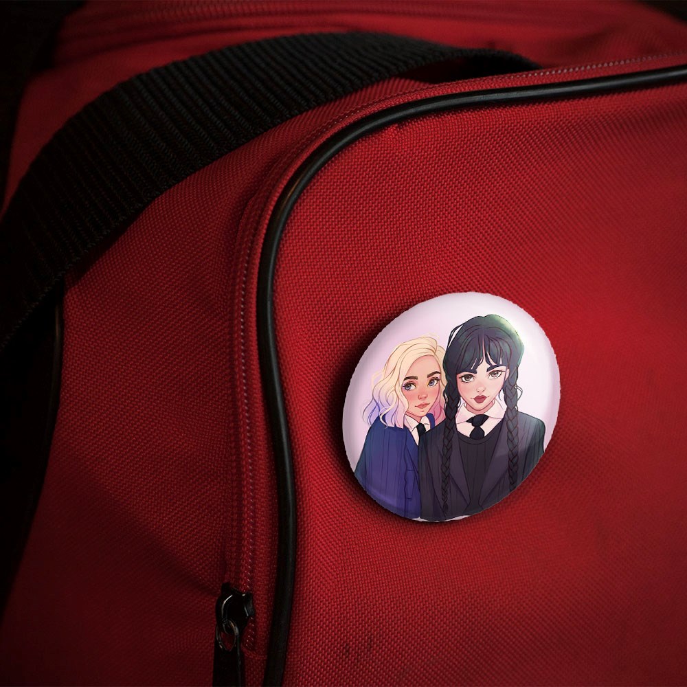 پیکسل 44 میلی متری سریال ونزدی Wednesday خندالو با روکش سلفون حرارتی مات مخملی ضدخش و قطعه پشتی رنگی تولید شده است.پلاستیکی پشت پیکسل با سوزن یک تکه ثابت و بدون لغزش و جا به جایی، ایستایی بسیار بهتری نسبت به پشتی فلزی پیکسل دارند که این مهم در تولید این محصول نیز رعایت شده است.
