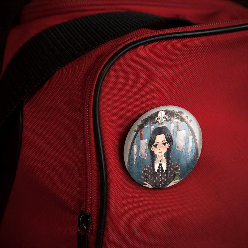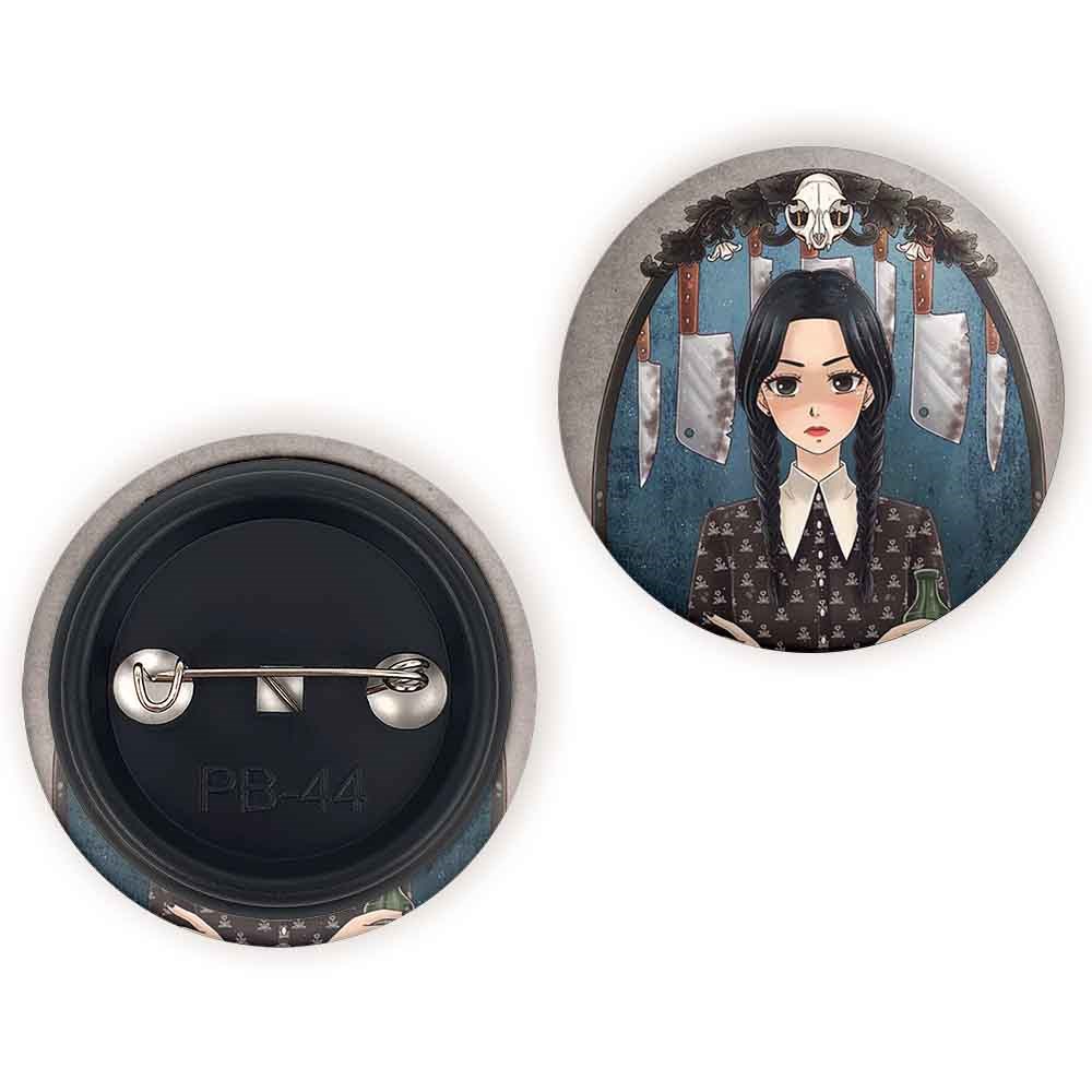 پیکسل 44 میلی متری سریال ونزدی Wednesday خندالو با روکش سلفون حرارتی مات مخملی ضدخش و قطعه پشتی رنگی تولید شده است.پلاستیکی پشت پیکسل با سوزن یک تکه ثابت و بدون لغزش و جا به جایی، ایستایی بسیار بهتری نسبت به پشتی فلزی پیکسل دارند که این مهم در تولید این محصول نیز رعایت شده است.