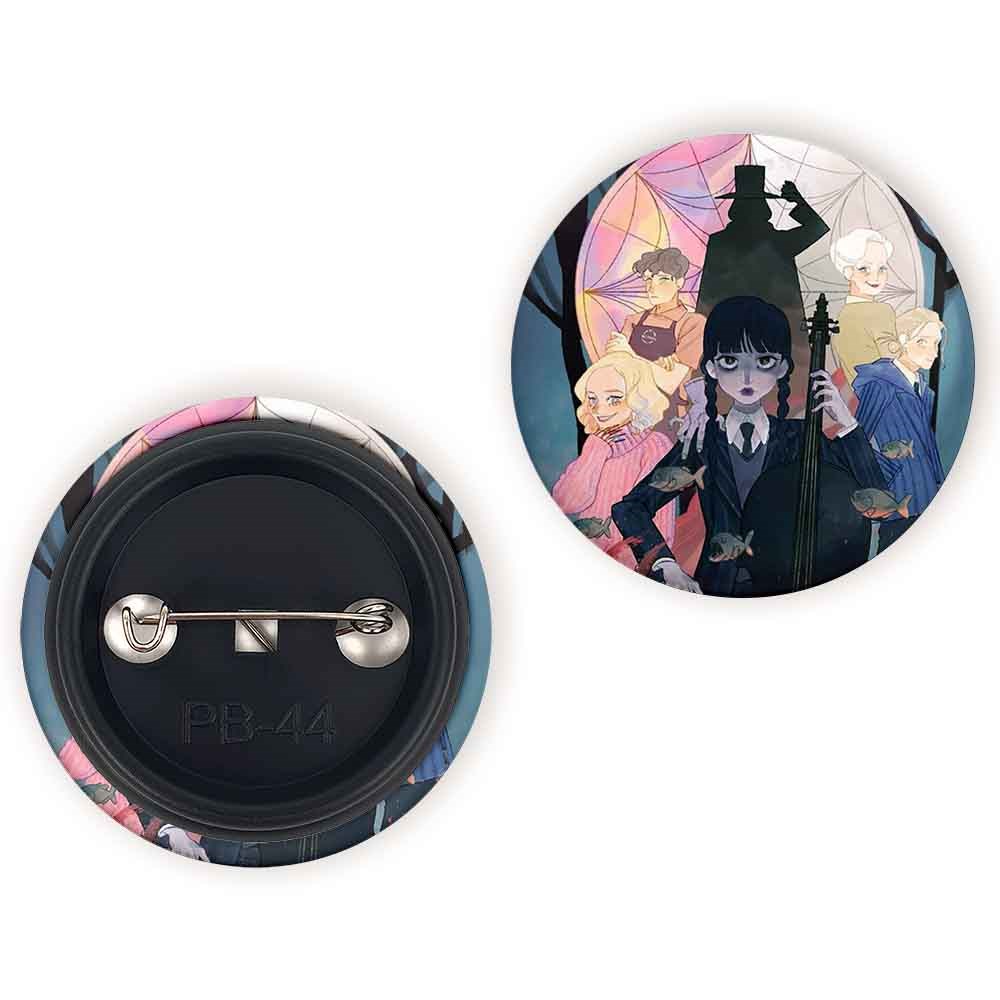 پیکسل 44 میلی متری سریال ونزدی Wednesday خندالو با روکش سلفون حرارتی مات مخملی ضدخش و قطعه پشتی رنگی تولید شده است.پلاستیکی پشت پیکسل با سوزن یک تکه ثابت و بدون لغزش و جا به جایی، ایستایی بسیار بهتری نسبت به پشتی فلزی پیکسل دارند که این مهم در تولید این محصول نیز رعایت شده است.