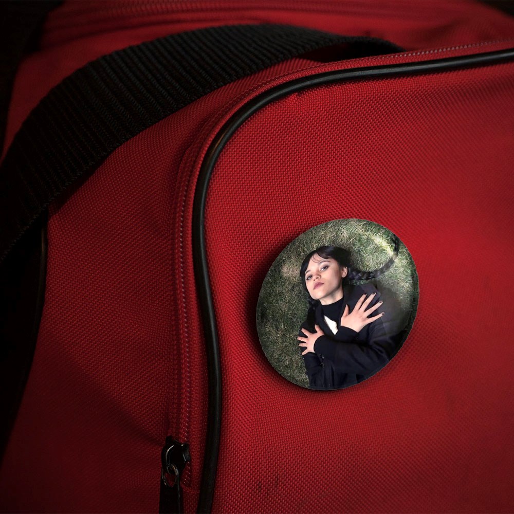 پیکسل 44 میلی متری سریال ونزدی Wednesday خندالو با روکش سلفون حرارتی مات مخملی ضدخش و قطعه پشتی رنگی تولید شده است.پلاستیکی پشت پیکسل با سوزن یک تکه ثابت و بدون لغزش و جا به جایی، ایستایی بسیار بهتری نسبت به پشتی فلزی پیکسل دارند که این مهم در تولید این محصول نیز رعایت شده است.