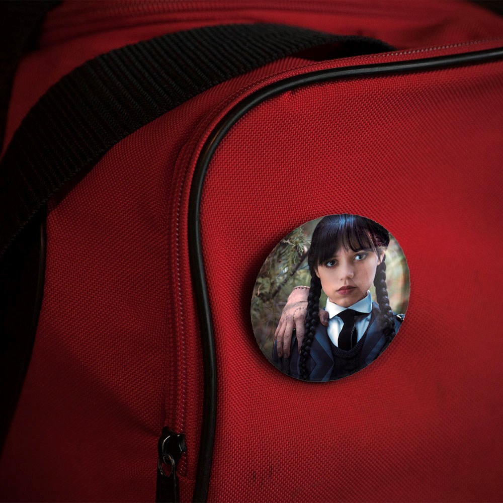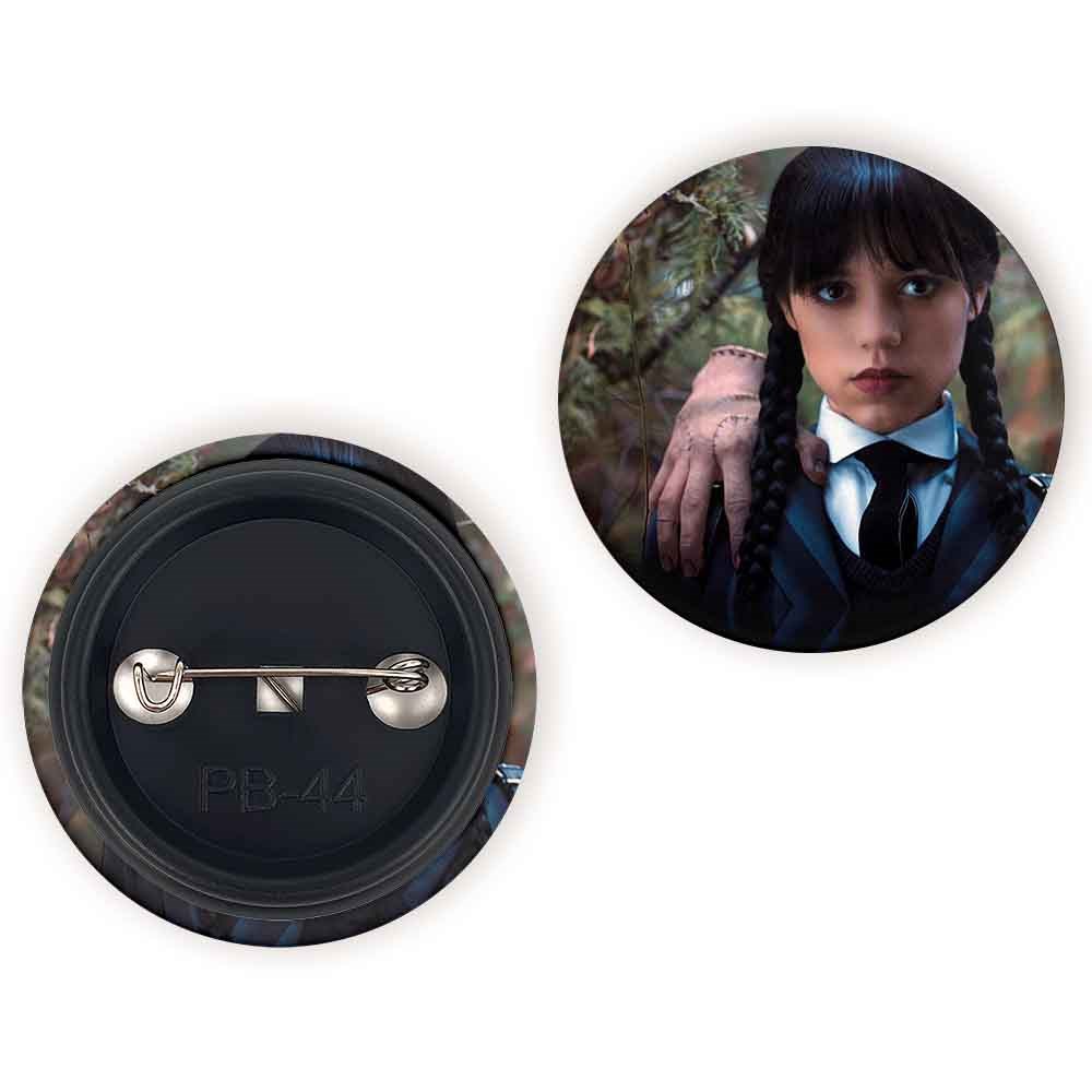 پیکسل 44 میلی متری سریال ونزدی Wednesday خندالو با روکش سلفون حرارتی مات مخملی ضدخش و قطعه پشتی رنگی تولید شده است.پلاستیکی پشت پیکسل با سوزن یک تکه ثابت و بدون لغزش و جا به جایی، ایستایی بسیار بهتری نسبت به پشتی فلزی پیکسل دارند که این مهم در تولید این محصول نیز رعایت شده است.