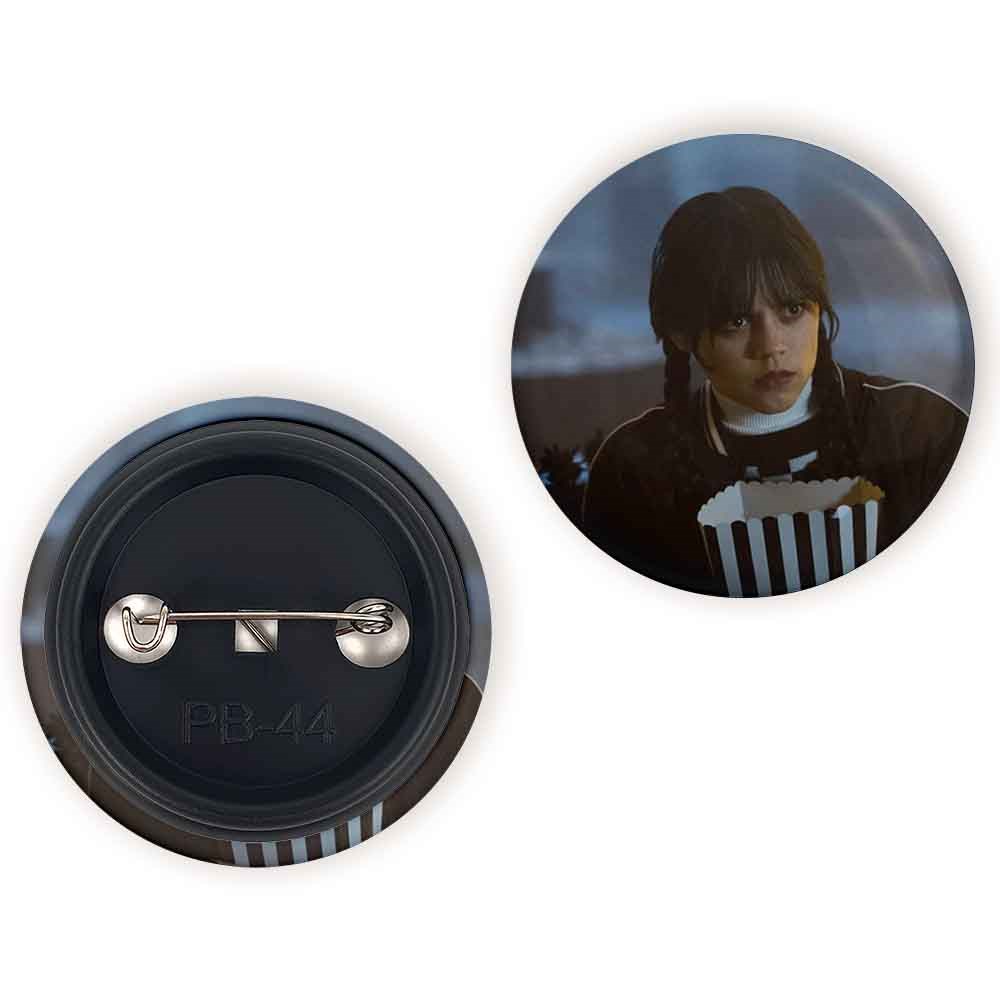 پیکسل 44 میلی متری سریال ونزدی Wednesday خندالو با روکش سلفون حرارتی مات مخملی ضدخش و قطعه پشتی رنگی تولید شده است.پلاستیکی پشت پیکسل با سوزن یک تکه ثابت و بدون لغزش و جا به جایی، ایستایی بسیار بهتری نسبت به پشتی فلزی پیکسل دارند که این مهم در تولید این محصول نیز رعایت شده است.