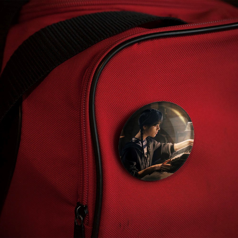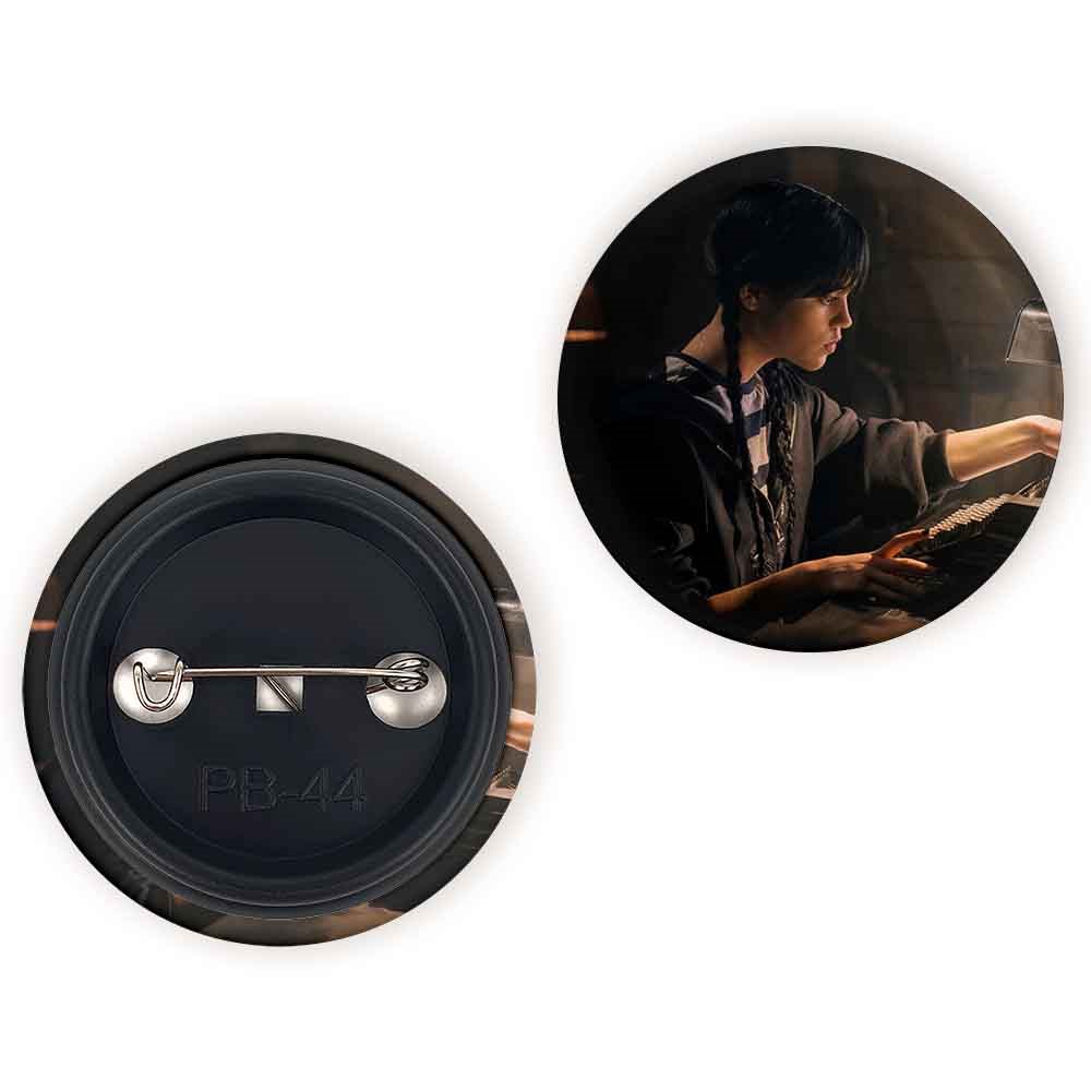پیکسل 44 میلی متری سریال ونزدی Wednesday خندالو با روکش سلفون حرارتی مات مخملی ضدخش و قطعه پشتی رنگی تولید شده است.پلاستیکی پشت پیکسل با سوزن یک تکه ثابت و بدون لغزش و جا به جایی، ایستایی بسیار بهتری نسبت به پشتی فلزی پیکسل دارند که این مهم در تولید این محصول نیز رعایت شده است.