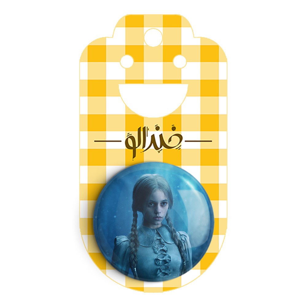 پیکسل 44 میلی متری سریال ونزدی Wednesday خندالو با روکش سلفون حرارتی مات مخملی ضدخش و قطعه پشتی رنگی تولید شده است.پلاستیکی پشت پیکسل با سوزن یک تکه ثابت و بدون لغزش و جا به جایی، ایستایی بسیار بهتری نسبت به پشتی فلزی پیکسل دارند که این مهم در تولید این محصول نیز رعایت شده است.