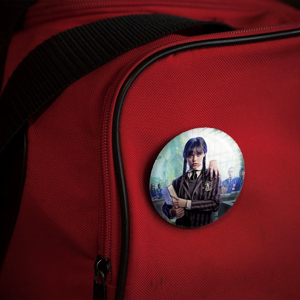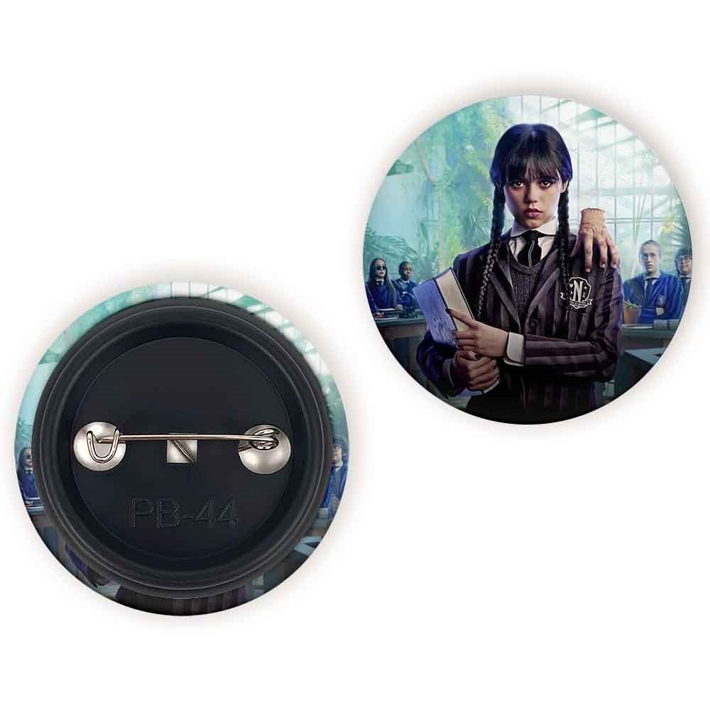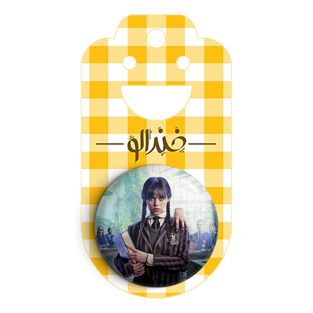 پیکسل 44 میلی متری سریال ونزدی Wednesday خندالو با روکش سلفون حرارتی مات مخملی ضدخش و قطعه پشتی رنگی تولید شده است.پلاستیکی پشت پیکسل با سوزن یک تکه ثابت و بدون لغزش و جا به جایی، ایستایی بسیار بهتری نسبت به پشتی فلزی پیکسل دارند که این مهم در تولید این محصول نیز رعایت شده است.