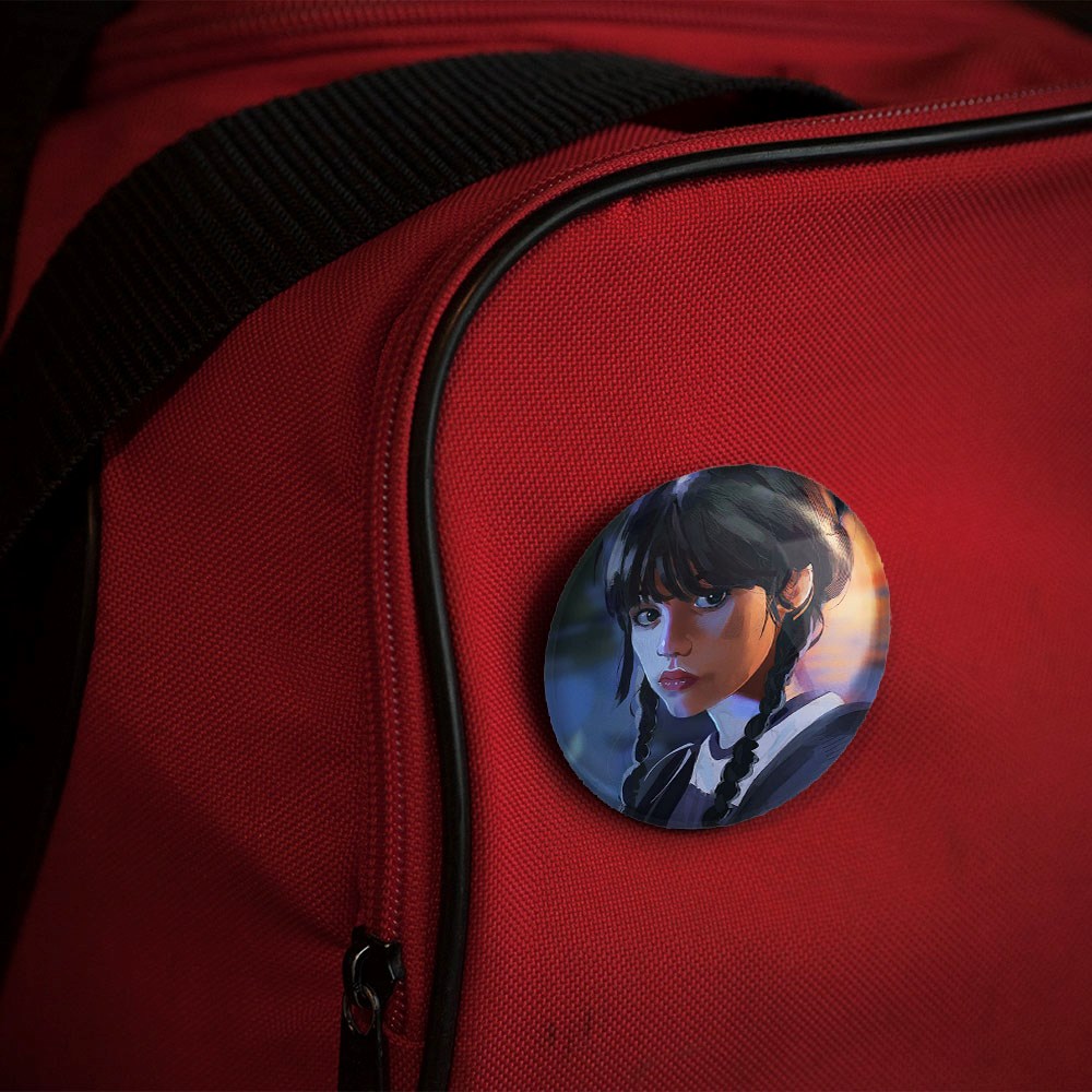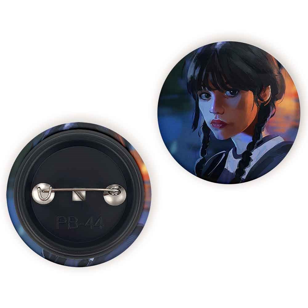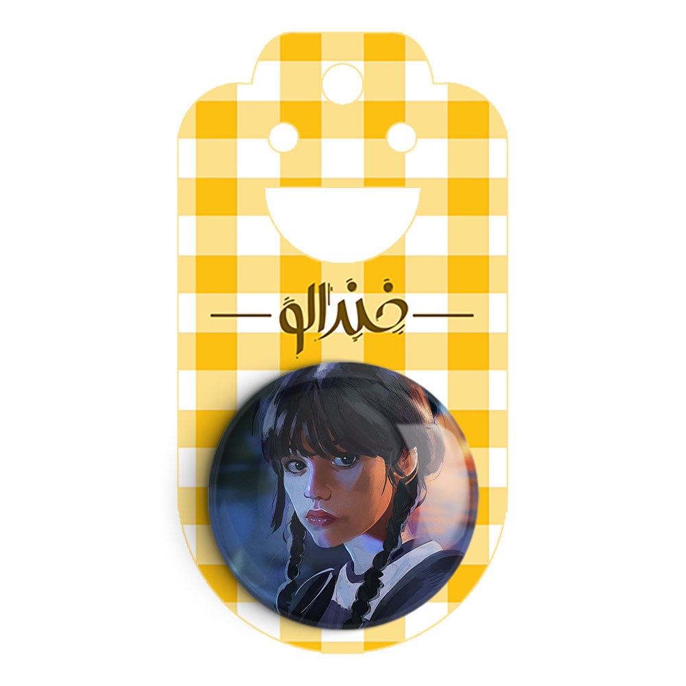 پیکسل 44 میلی متری سریال ونزدی Wednesday خندالو با روکش سلفون حرارتی مات مخملی ضدخش و قطعه پشتی رنگی تولید شده است.پلاستیکی پشت پیکسل با سوزن یک تکه ثابت و بدون لغزش و جا به جایی، ایستایی بسیار بهتری نسبت به پشتی فلزی پیکسل دارند که این مهم در تولید این محصول نیز رعایت شده است.