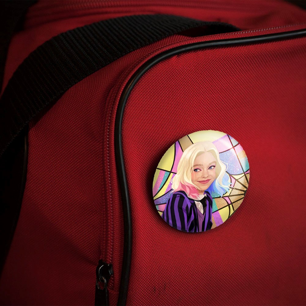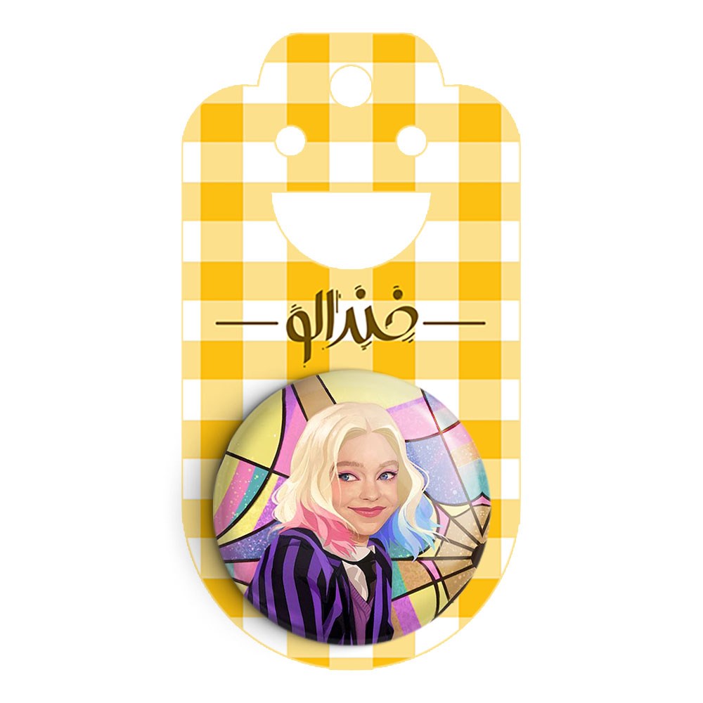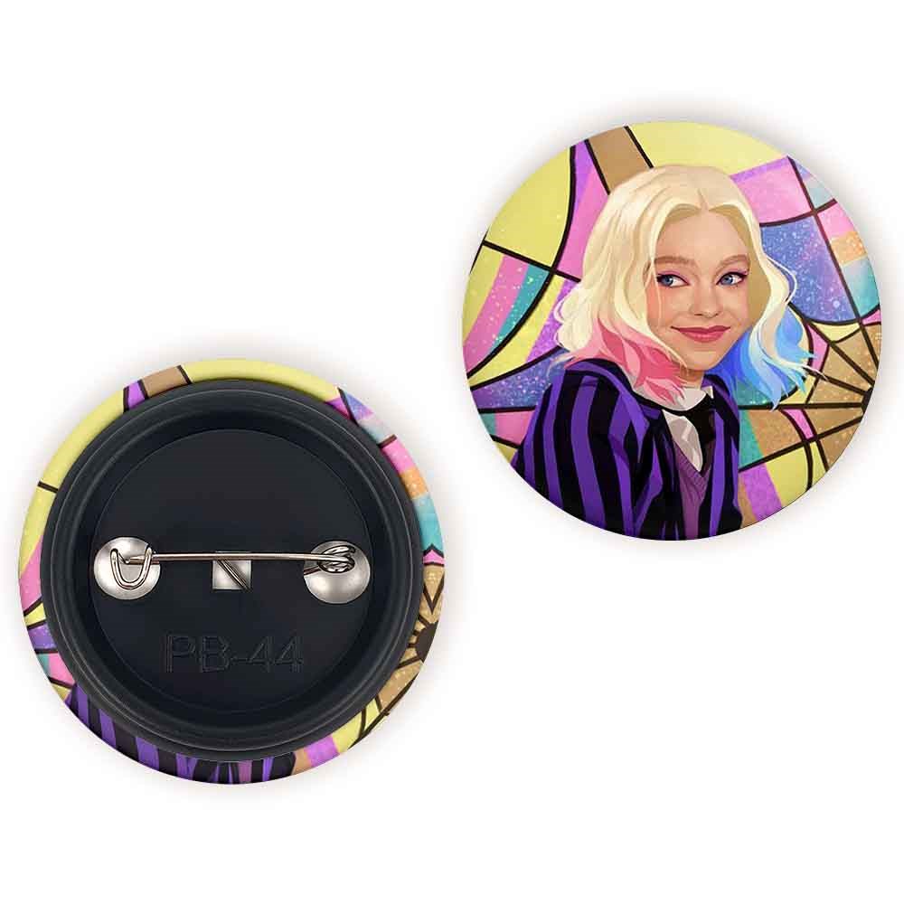 پیکسل 44 میلی متری سریال ونزدی Wednesday خندالو با روکش سلفون حرارتی مات مخملی ضدخش و قطعه پشتی رنگی تولید شده است.پلاستیکی پشت پیکسل با سوزن یک تکه ثابت و بدون لغزش و جا به جایی، ایستایی بسیار بهتری نسبت به پشتی فلزی پیکسل دارند که این مهم در تولید این محصول نیز رعایت شده است.