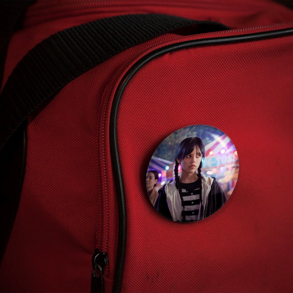 پیکسل 44 میلی متری سریال ونزدی Wednesday خندالو با روکش سلفون حرارتی مات مخملی ضدخش و قطعه پشتی رنگی تولید شده است.پلاستیکی پشت پیکسل با سوزن یک تکه ثابت و بدون لغزش و جا به جایی، ایستایی بسیار بهتری نسبت به پشتی فلزی پیکسل دارند که این مهم در تولید این محصول نیز رعایت شده است.