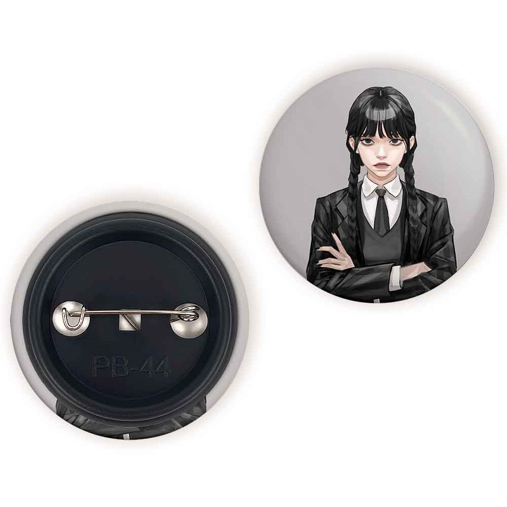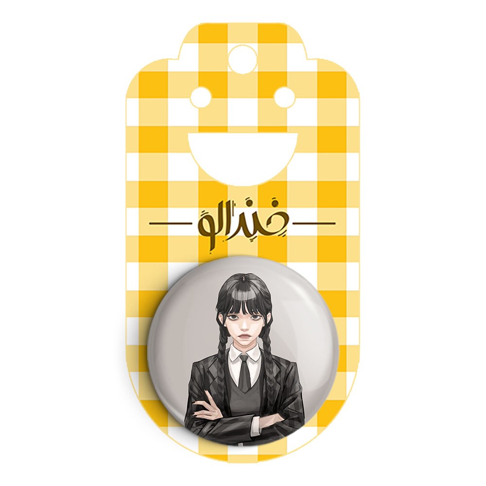 پیکسل 44 میلی متری سریال ونزدی Wednesday خندالو با روکش سلفون حرارتی مات مخملی ضدخش و قطعه پشتی رنگی تولید شده است.پلاستیکی پشت پیکسل با سوزن یک تکه ثابت و بدون لغزش و جا به جایی، ایستایی بسیار بهتری نسبت به پشتی فلزی پیکسل دارند که این مهم در تولید این محصول نیز رعایت شده است.