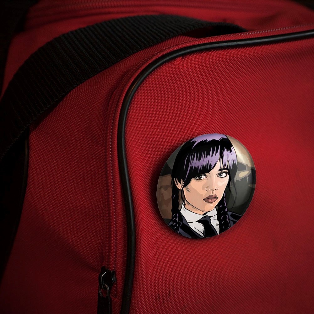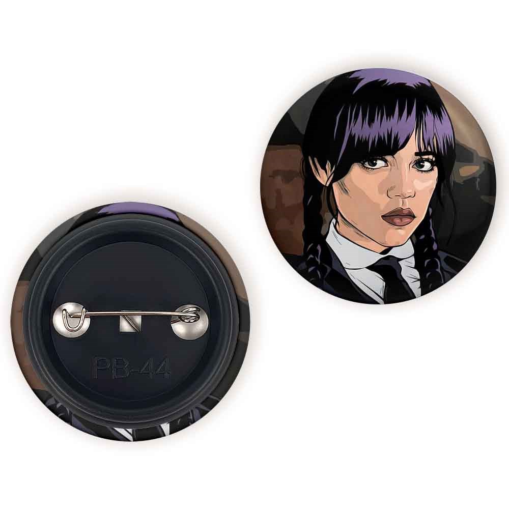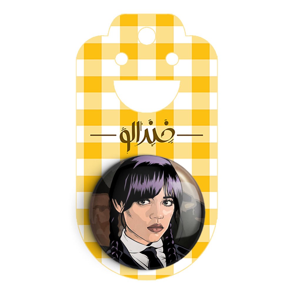 پیکسل 44 میلی متری سریال ونزدی Wednesday خندالو با روکش سلفون حرارتی مات مخملی ضدخش و قطعه پشتی رنگی تولید شده است.پلاستیکی پشت پیکسل با سوزن یک تکه ثابت و بدون لغزش و جا به جایی، ایستایی بسیار بهتری نسبت به پشتی فلزی پیکسل دارند که این مهم در تولید این محصول نیز رعایت شده است.