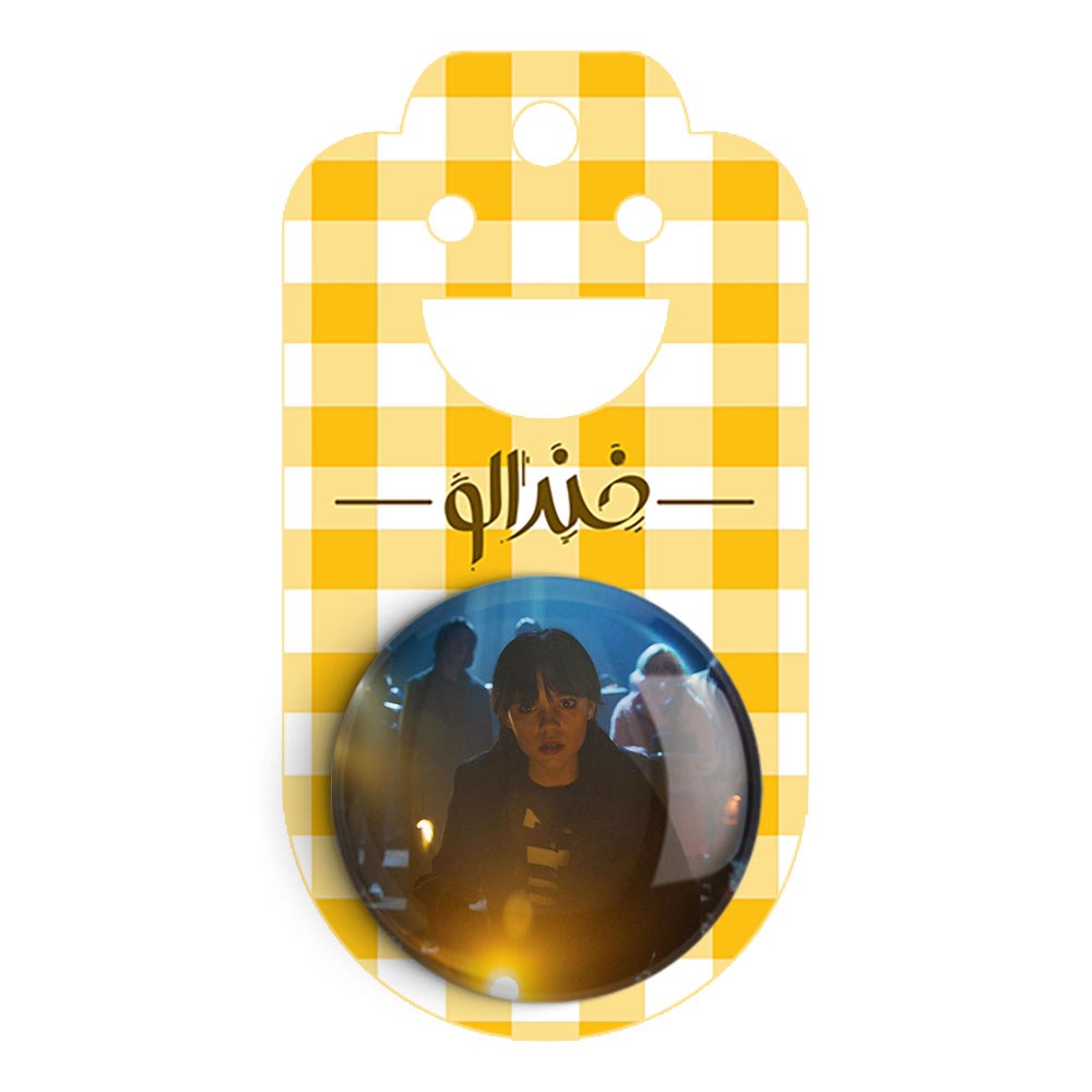 پیکسل 44 میلی متری سریال ونزدی Wednesday خندالو با روکش سلفون حرارتی مات مخملی ضدخش و قطعه پشتی رنگی تولید شده است.پلاستیکی پشت پیکسل با سوزن یک تکه ثابت و بدون لغزش و جا به جایی، ایستایی بسیار بهتری نسبت به پشتی فلزی پیکسل دارند که این مهم در تولید این محصول نیز رعایت شده است.