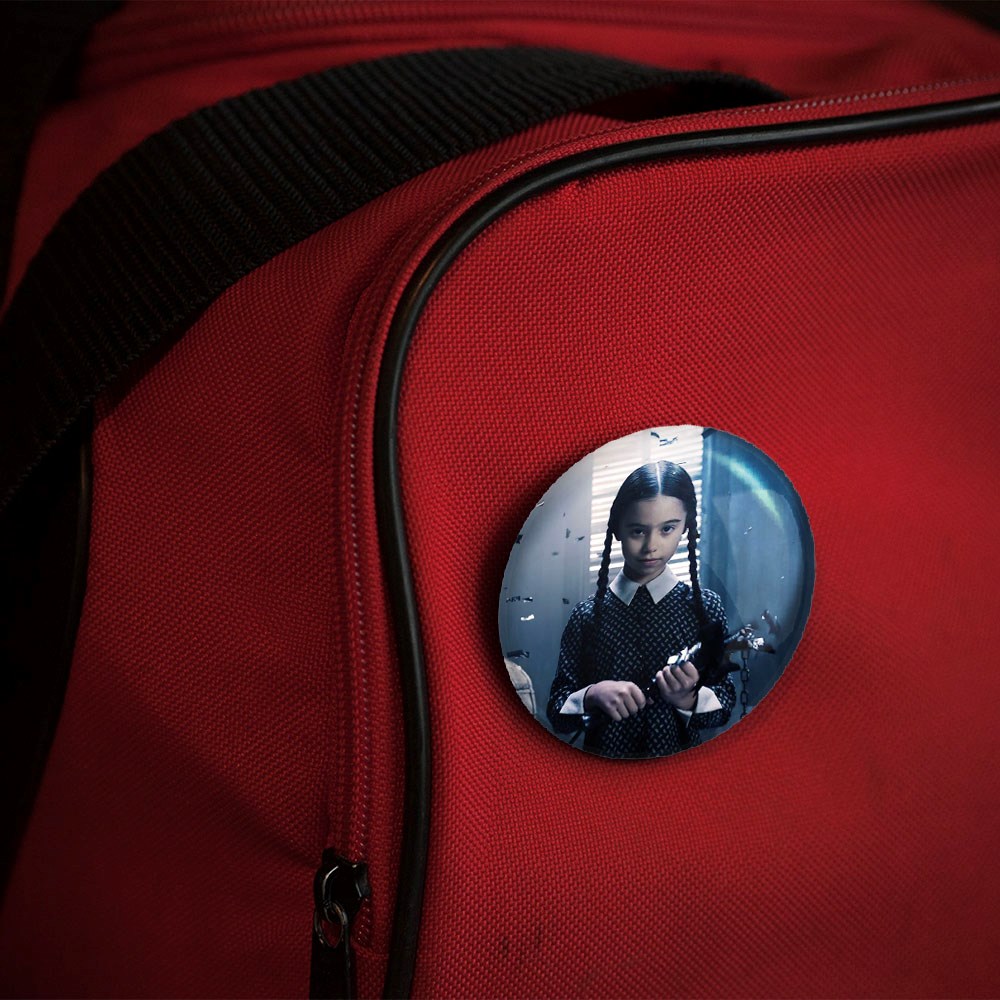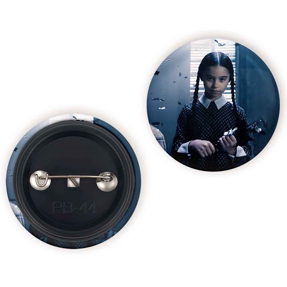 پیکسل 44 میلی متری سریال ونزدی Wednesday خندالو با روکش سلفون حرارتی مات مخملی ضدخش و قطعه پشتی رنگی تولید شده است.پلاستیکی پشت پیکسل با سوزن یک تکه ثابت و بدون لغزش و جا به جایی، ایستایی بسیار بهتری نسبت به پشتی فلزی پیکسل دارند که این مهم در تولید این محصول نیز رعایت شده است.