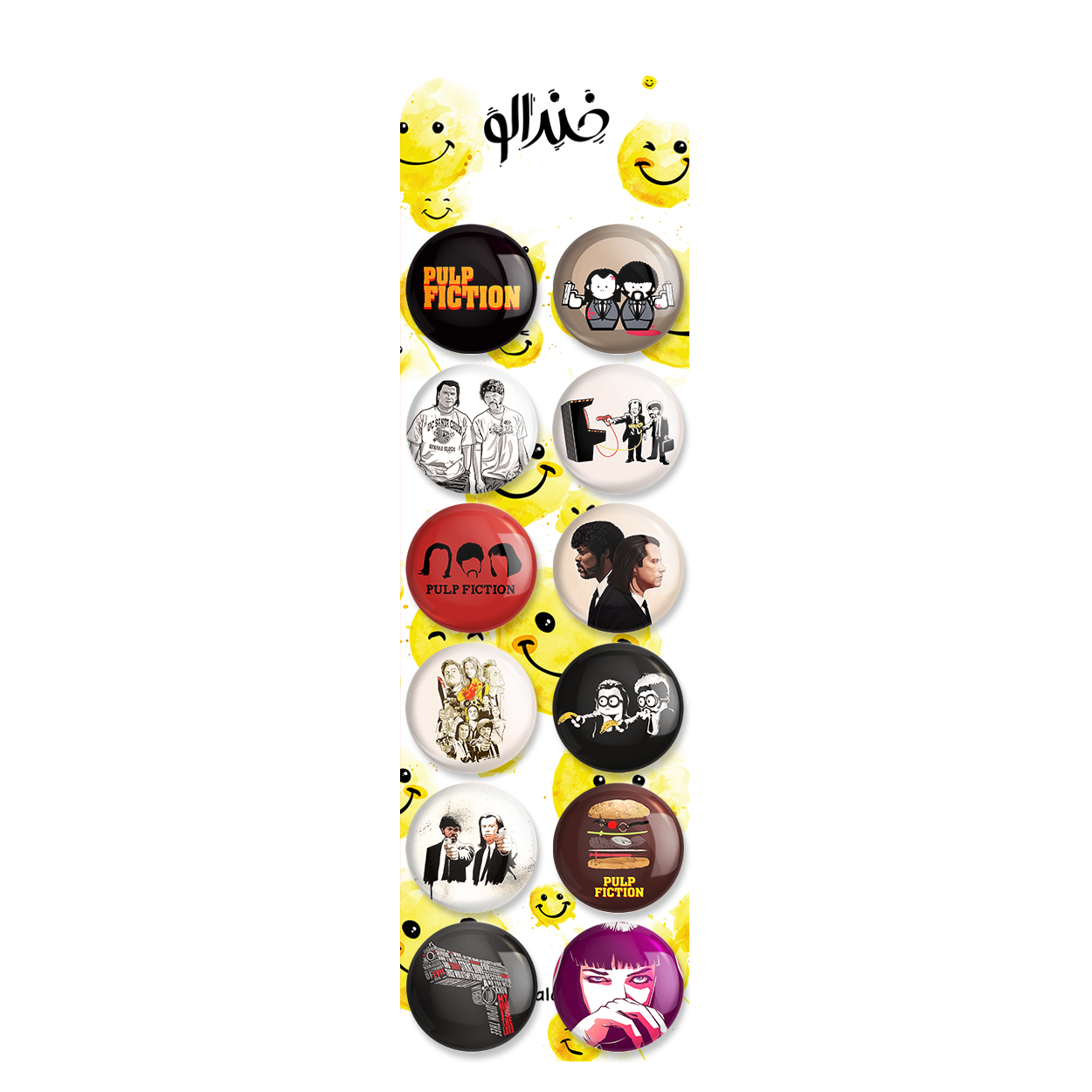 پک 12 عددی پیکسل خندالو طرح سریال پالپ فیکشن (Pulp Fiction) با روکش سلفون حرارتی براق ضدخش و قطعه پشتی رنگی تولید شده است. قطعات پشتی از میان 6 رنگ سفید، مشکی، صورتی، زرد، آبی و قرمز که با توجه به نوع و رنگبندی طرح روی پیکسل انتخاب شده اند تولید می شود و در هر بسته بندی مطابق عکس محصول می باشد. قطعات پلاستیکی پشت پیکسل با سوزن یک تکه ثابت و بدون لغزش و جا به جایی، ایستایی بسیار بهتری نسبت به پشتی فلزی پیکسل دارند که این مهم در تولید این محصول نیز رعایت شده است. چاپ پیکسل طرح سریال پالپ فیکشن (Pulp Fiction) بسته ۱۲ عددی نیز با دستگاه های استاندارد و با بهترین سطح کیفی صورت گرفته و طرح با شفافیتی مثال زدنی و با سلفونی بدون شکست نور بر روی پیکسل نقش بسته است.