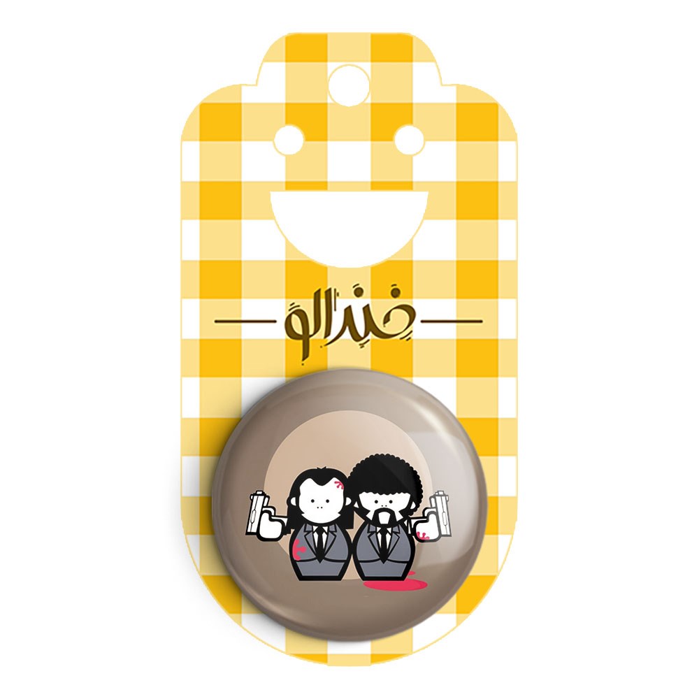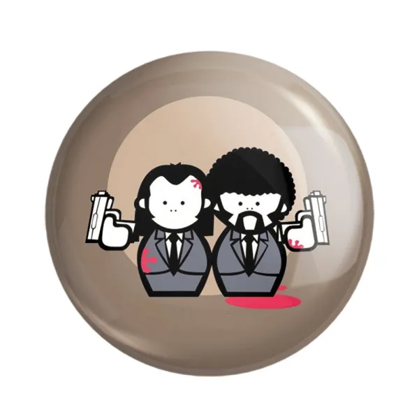 پیکسل 44 میلی متری سریال پالپ فیکشن Pulp Fiction خندالو با روکش سلفون حرارتی مات مخملی ضدخش و قطعه پشتی رنگی تولید شده است.پلاستیکی پشت پیکسل با سوزن یک تکه ثابت و بدون لغزش و جا به جایی، ایستایی بسیار بهتری نسبت به پشتی فلزی پیکسل دارند که این مهم در تولید این محصول نیز رعایت شده است.
