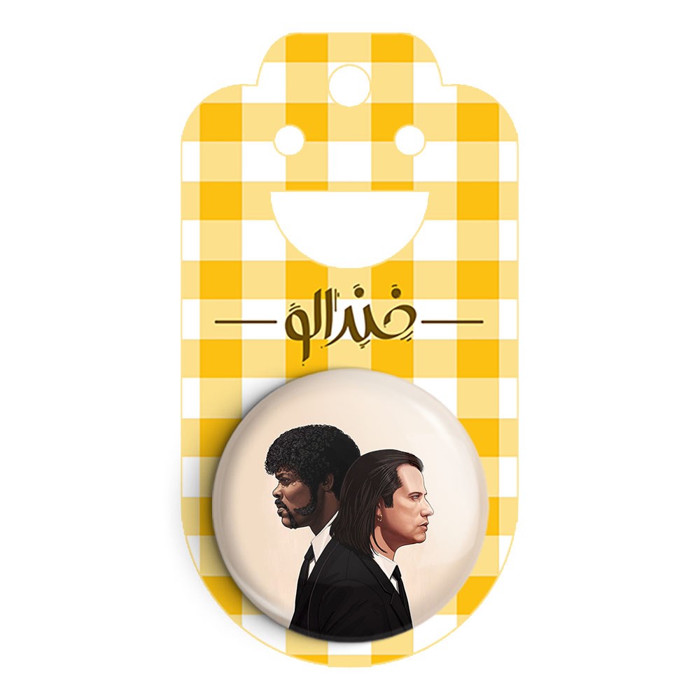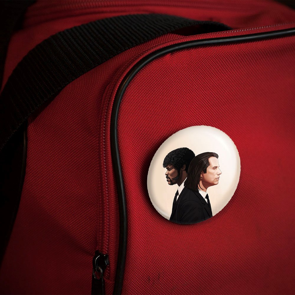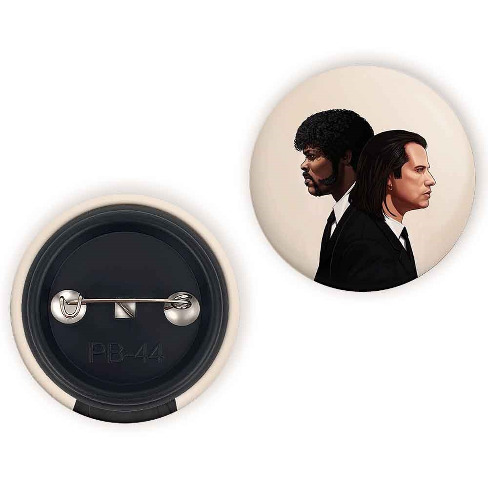 پیکسل 44 میلی متری سریال پالپ فیکشن Pulp Fiction خندالو با روکش سلفون حرارتی مات مخملی ضدخش و قطعه پشتی رنگی تولید شده است.پلاستیکی پشت پیکسل با سوزن یک تکه ثابت و بدون لغزش و جا به جایی، ایستایی بسیار بهتری نسبت به پشتی فلزی پیکسل دارند که این مهم در تولید این محصول نیز رعایت شده است.