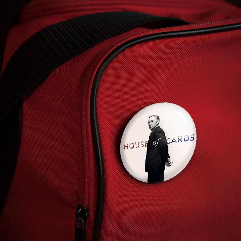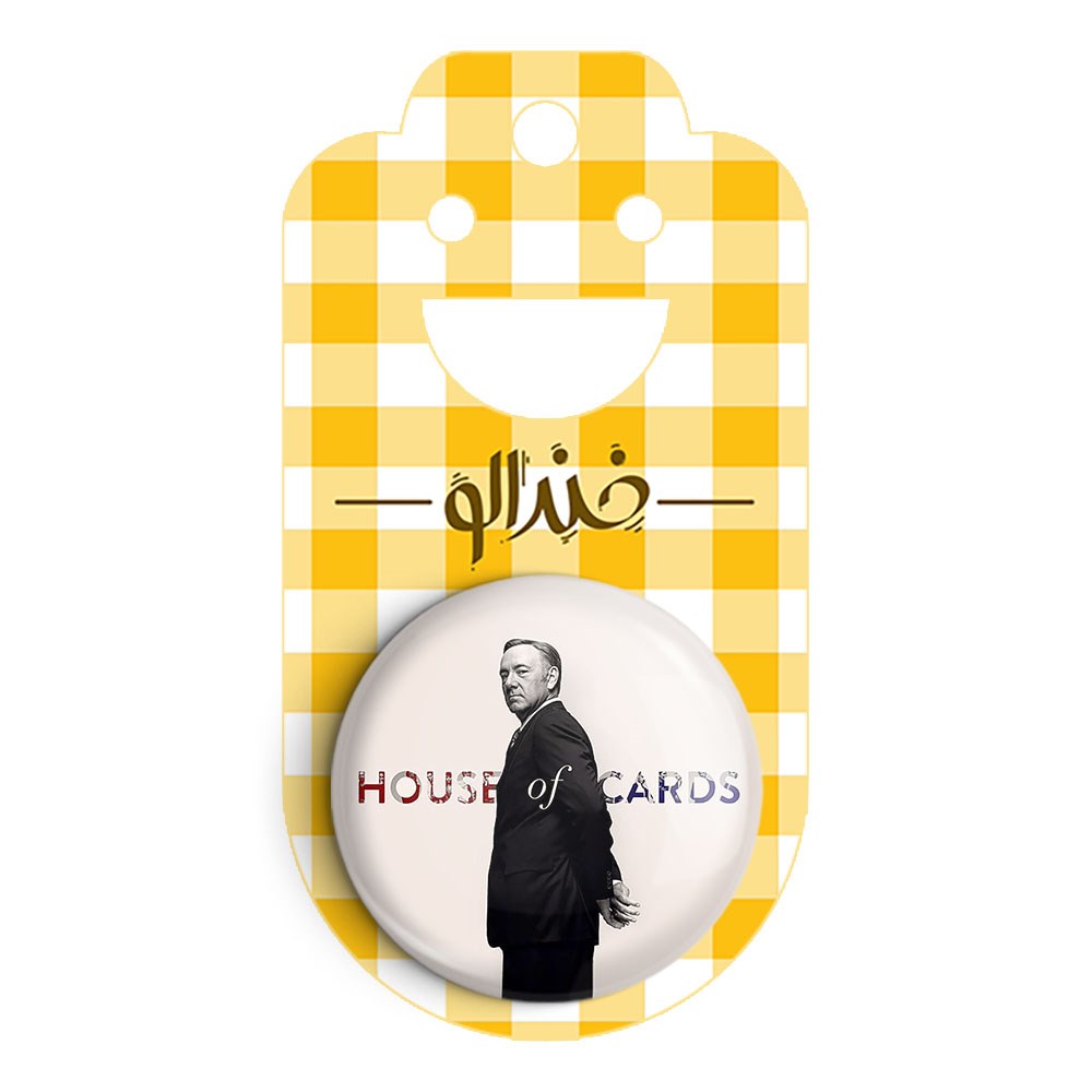 پیکسل 44 میلی متری سریال House Of Cards خندالو با روکش سلفون حرارتی مات مخملی ضدخش و قطعه پشتی رنگی تولید شده است.پلاستیکی پشت پیکسل با سوزن یک تکه ثابت و بدون لغزش و جا به جایی، ایستایی بسیار بهتری نسبت به پشتی فلزی پیکسل دارند که این مهم در تولید این محصول نیز رعایت شده است.
