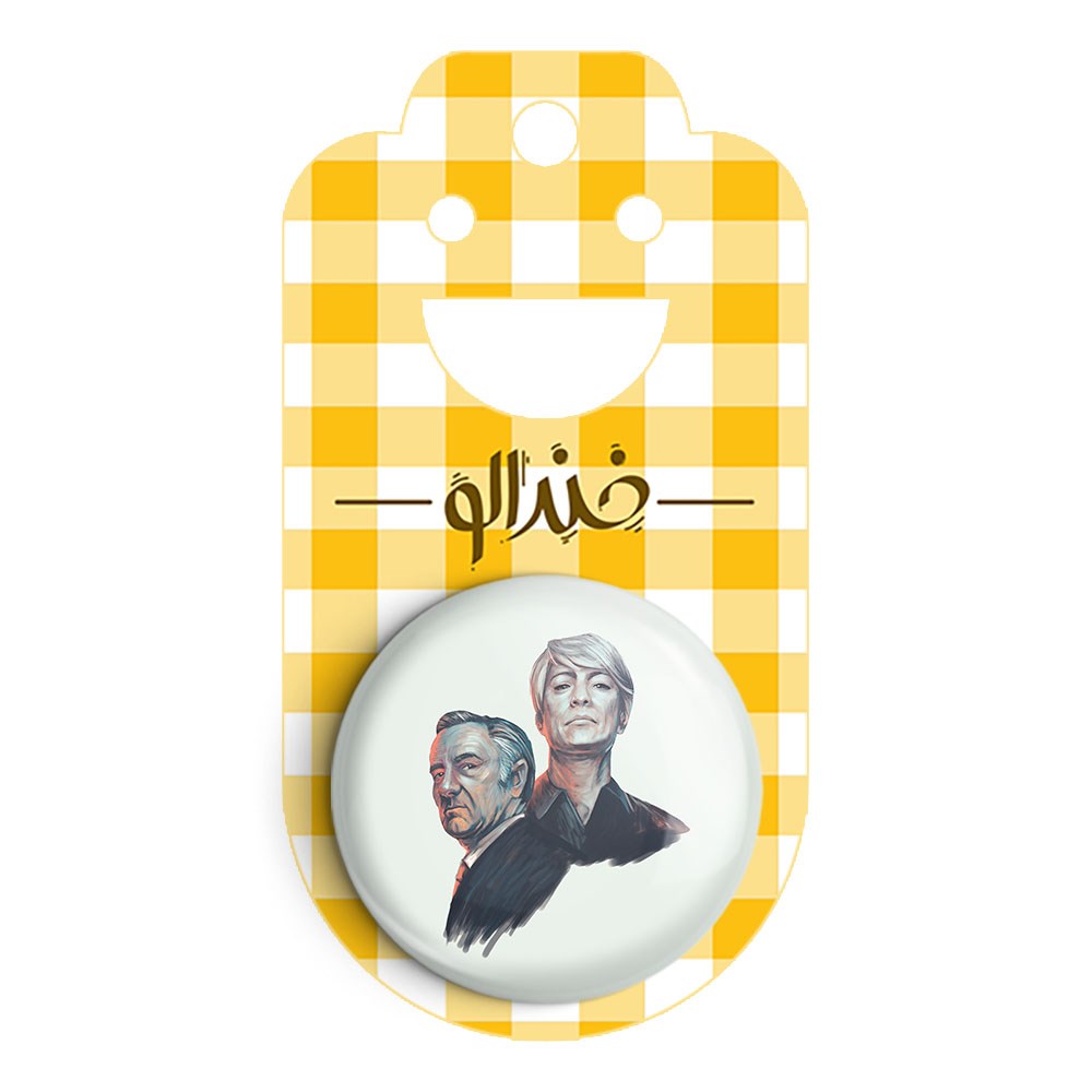 پیکسل 44 میلی متری سریال House Of Cards خندالو با روکش سلفون حرارتی مات مخملی ضدخش و قطعه پشتی رنگی تولید شده است.پلاستیکی پشت پیکسل با سوزن یک تکه ثابت و بدون لغزش و جا به جایی، ایستایی بسیار بهتری نسبت به پشتی فلزی پیکسل دارند که این مهم در تولید این محصول نیز رعایت شده است.