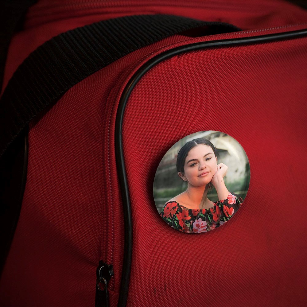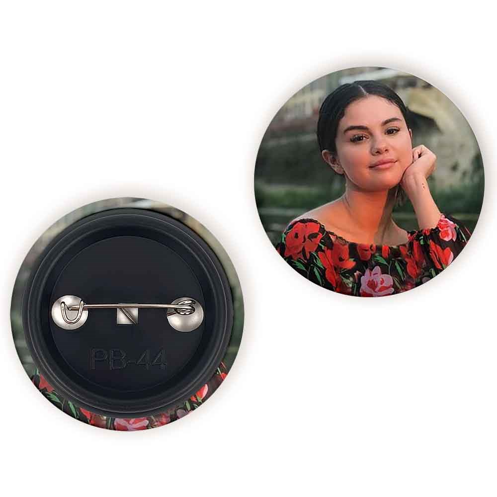 پیکسل 44 میلی متری سلنا گومز Selena Gomez خندالو با روکش سلفون حرارتی مات مخملی ضدخش و قطعه پشتی رنگی تولید شده است.پلاستیکی پشت پیکسل با سوزن یک تکه ثابت و بدون لغزش و جا به جایی، ایستایی بسیار بهتری نسبت به پشتی فلزی پیکسل دارند که این مهم در تولید این محصول نیز رعایت شده است.