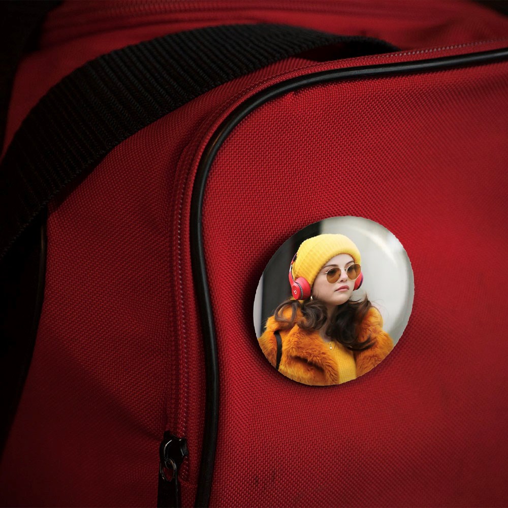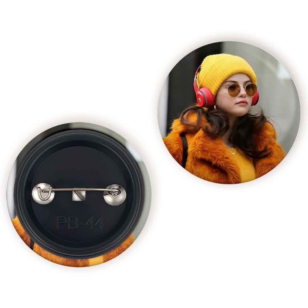 پیکسل 44 میلی متری سلنا گومز Selena Gomez خندالو با روکش سلفون حرارتی مات مخملی ضدخش و قطعه پشتی رنگی تولید شده است.پلاستیکی پشت پیکسل با سوزن یک تکه ثابت و بدون لغزش و جا به جایی، ایستایی بسیار بهتری نسبت به پشتی فلزی پیکسل دارند که این مهم در تولید این محصول نیز رعایت شده است.