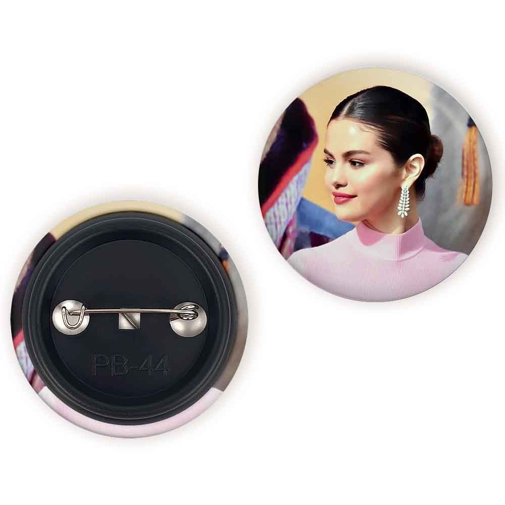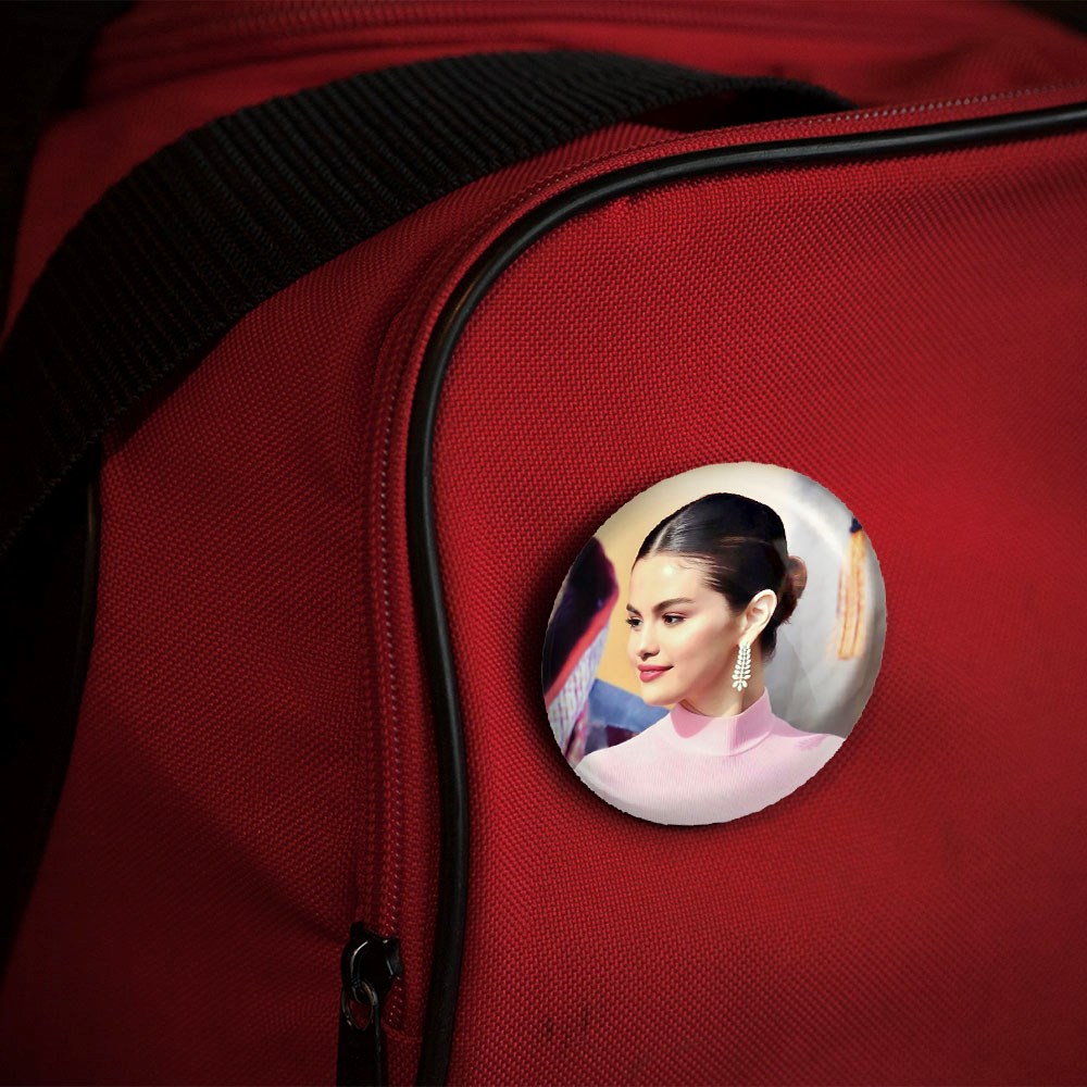 پیکسل 44 میلی متری سلنا گومز Selena Gomez خندالو با روکش سلفون حرارتی مات مخملی ضدخش و قطعه پشتی رنگی تولید شده است.پلاستیکی پشت پیکسل با سوزن یک تکه ثابت و بدون لغزش و جا به جایی، ایستایی بسیار بهتری نسبت به پشتی فلزی پیکسل دارند که این مهم در تولید این محصول نیز رعایت شده است.