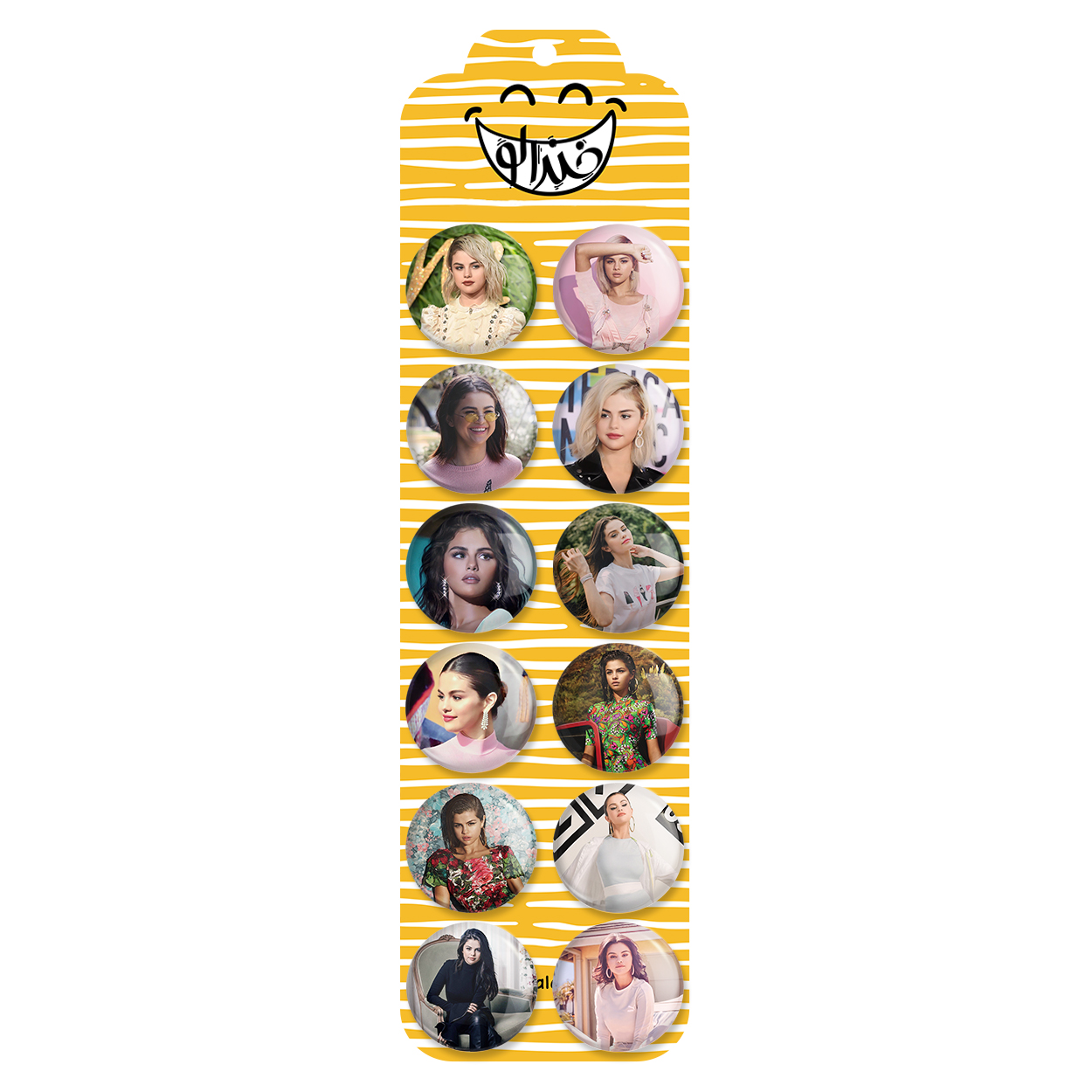پک 12 عددی پیکسل خندالو طرح سلنا گومز (Selena Gomez) با روکش سلفون حرارتی براق ضدخش و قطعه پشتی رنگی تولید شده است. قطعات پشتی از میان 6 رنگ سفید، مشکی، صورتی، زرد، آبی و قرمز که با توجه به نوع و رنگبندی طرح روی پیکسل انتخاب شده اند تولید می شود و در هر بسته بندی مطابق عکس محصول می باشد. قطعات پلاستیکی پشت پیکسل با سوزن یک تکه ثابت و بدون لغزش و جا به جایی، ایستایی بسیار بهتری نسبت به پشتی فلزی پیکسل دارند که این مهم در تولید این محصول نیز رعایت شده است.
