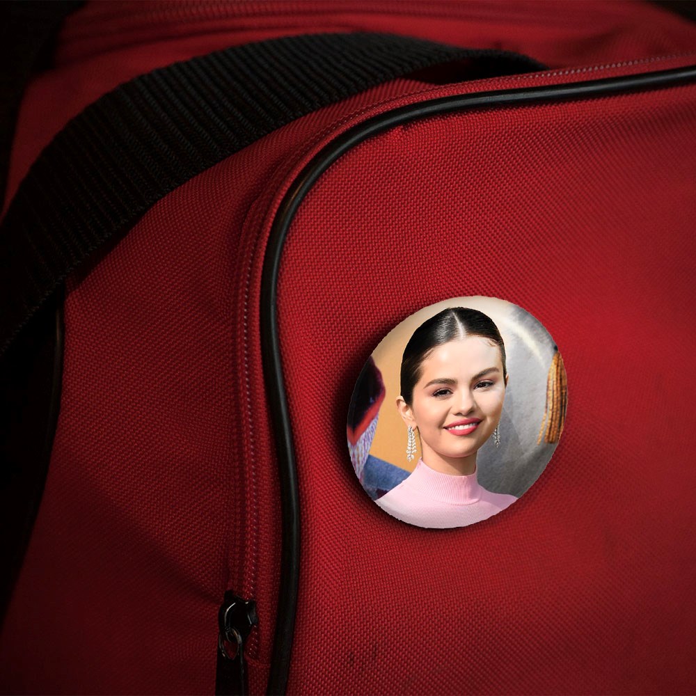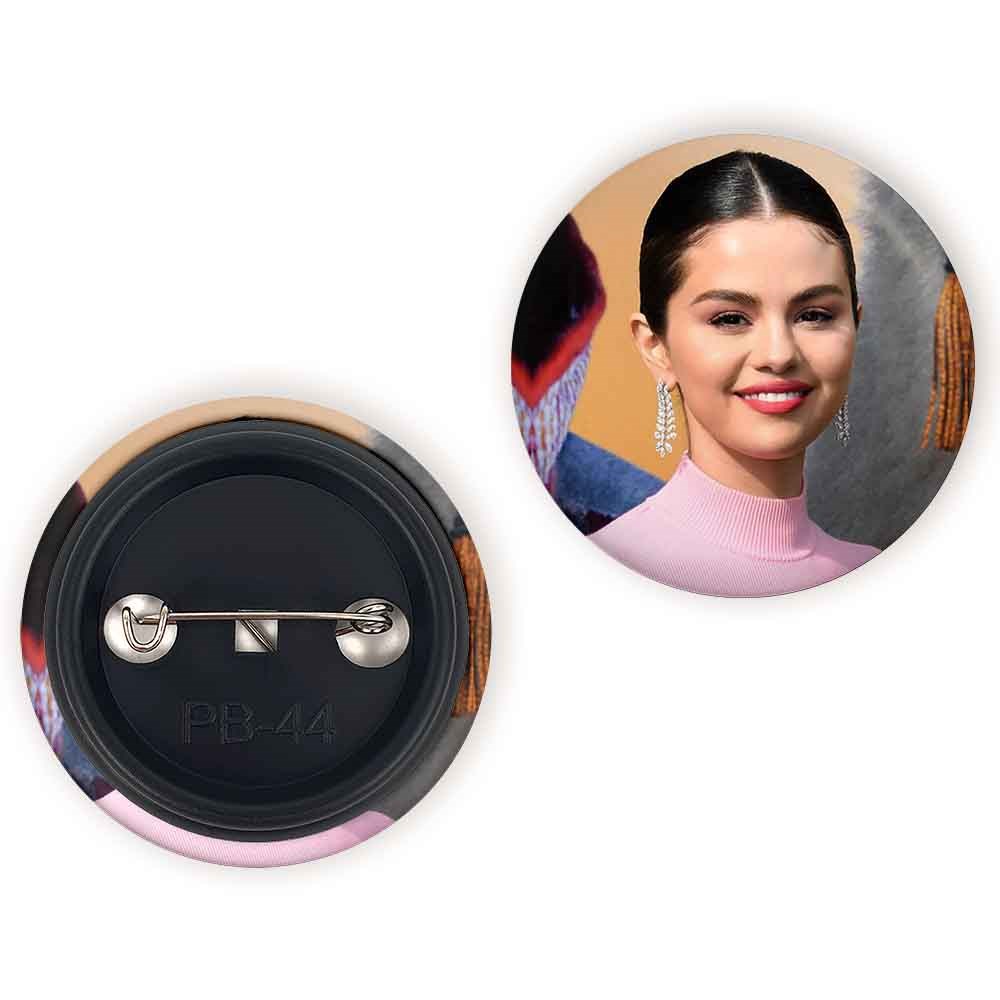 پیکسل 44 میلی متری سلنا گومز Selena Gomez خندالو با روکش سلفون حرارتی مات مخملی ضدخش و قطعه پشتی رنگی تولید شده است.پلاستیکی پشت پیکسل با سوزن یک تکه ثابت و بدون لغزش و جا به جایی، ایستایی بسیار بهتری نسبت به پشتی فلزی پیکسل دارند که این مهم در تولید این محصول نیز رعایت شده است.