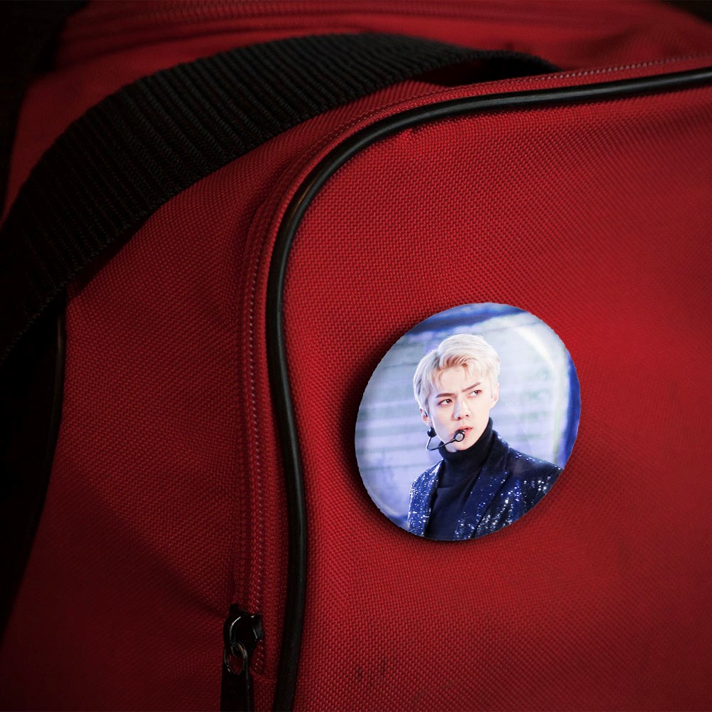 پیکسل 44 میلی متری سهون گروه اکسو EXO خندالو با روکش سلفون حرارتی مات مخملی ضدخش و قطعه پشتی رنگی تولید شده است.پلاستیکی پشت پیکسل با سوزن یک تکه ثابت و بدون لغزش و جا به جایی، ایستایی بسیار بهتری نسبت به پشتی فلزی پیکسل دارند که این مهم در تولید این محصول نیز رعایت شده است.