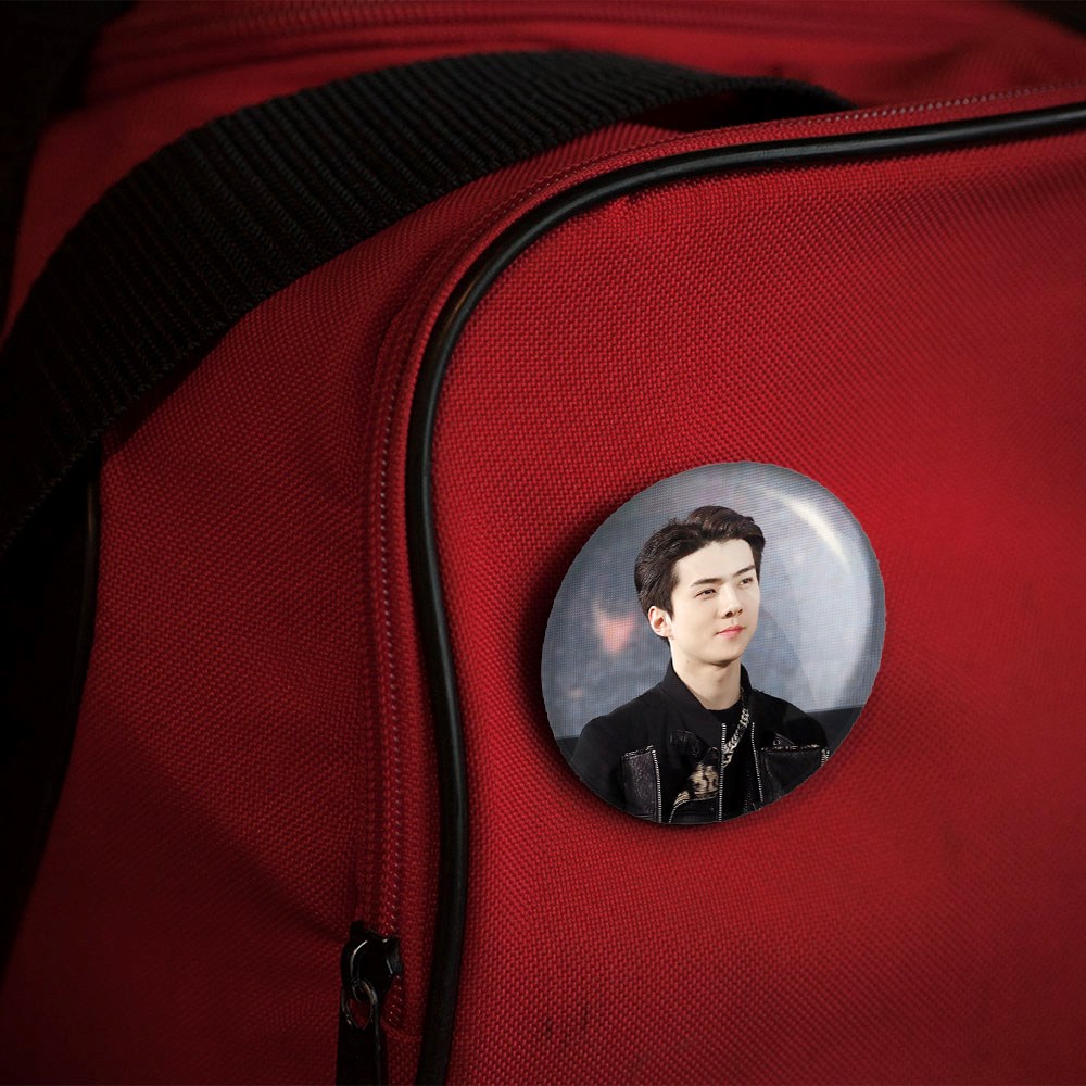 پیکسل 44 میلی متری سهون گروه اکسو EXO خندالو با روکش سلفون حرارتی مات مخملی ضدخش و قطعه پشتی رنگی تولید شده است.پلاستیکی پشت پیکسل با سوزن یک تکه ثابت و بدون لغزش و جا به جایی، ایستایی بسیار بهتری نسبت به پشتی فلزی پیکسل دارند که این مهم در تولید این محصول نیز رعایت شده است.