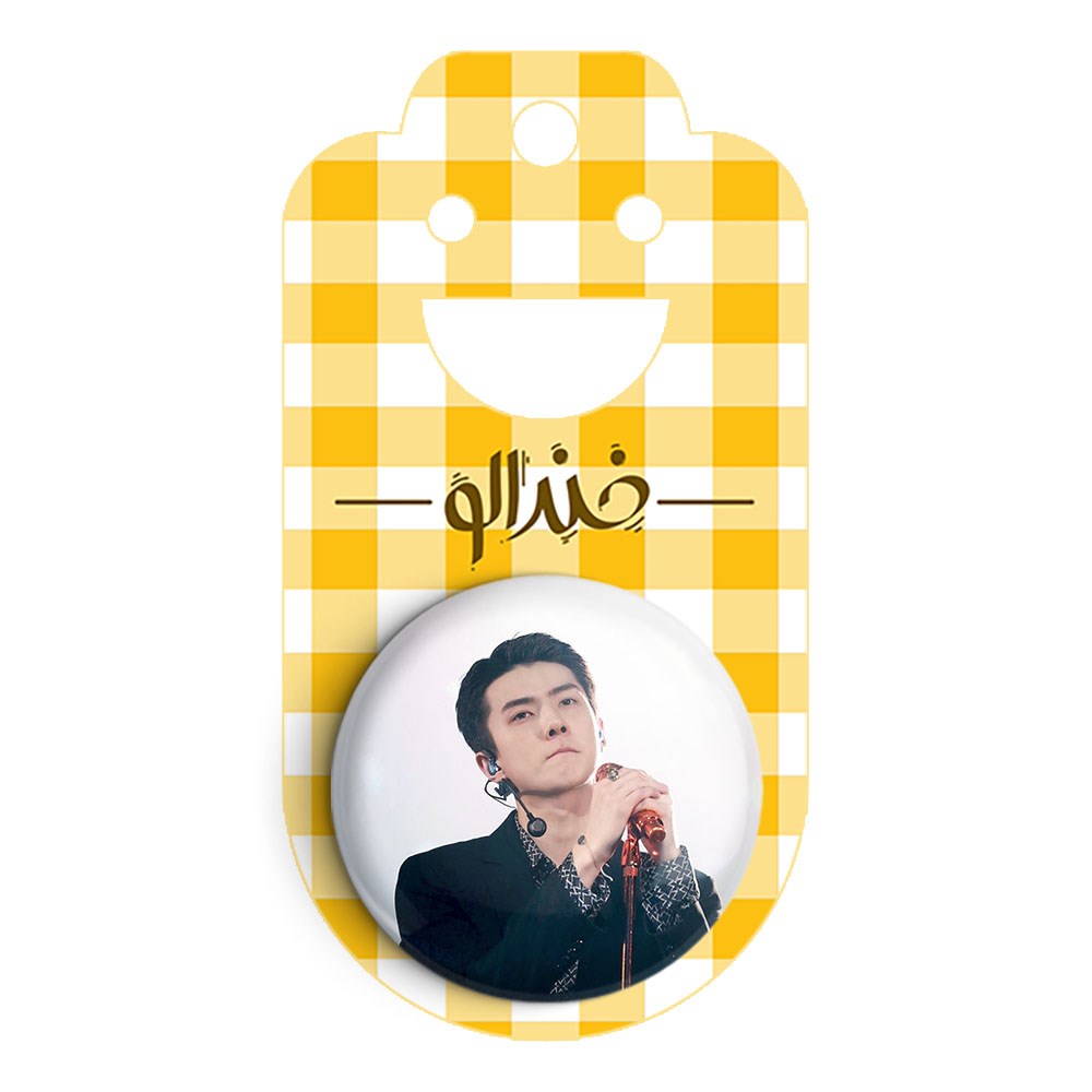 پیکسل 44 میلی متری سهون گروه اکسو EXO خندالو با روکش سلفون حرارتی مات مخملی ضدخش و قطعه پشتی رنگی تولید شده است.پلاستیکی پشت پیکسل با سوزن یک تکه ثابت و بدون لغزش و جا به جایی، ایستایی بسیار بهتری نسبت به پشتی فلزی پیکسل دارند که این مهم در تولید این محصول نیز رعایت شده است.
