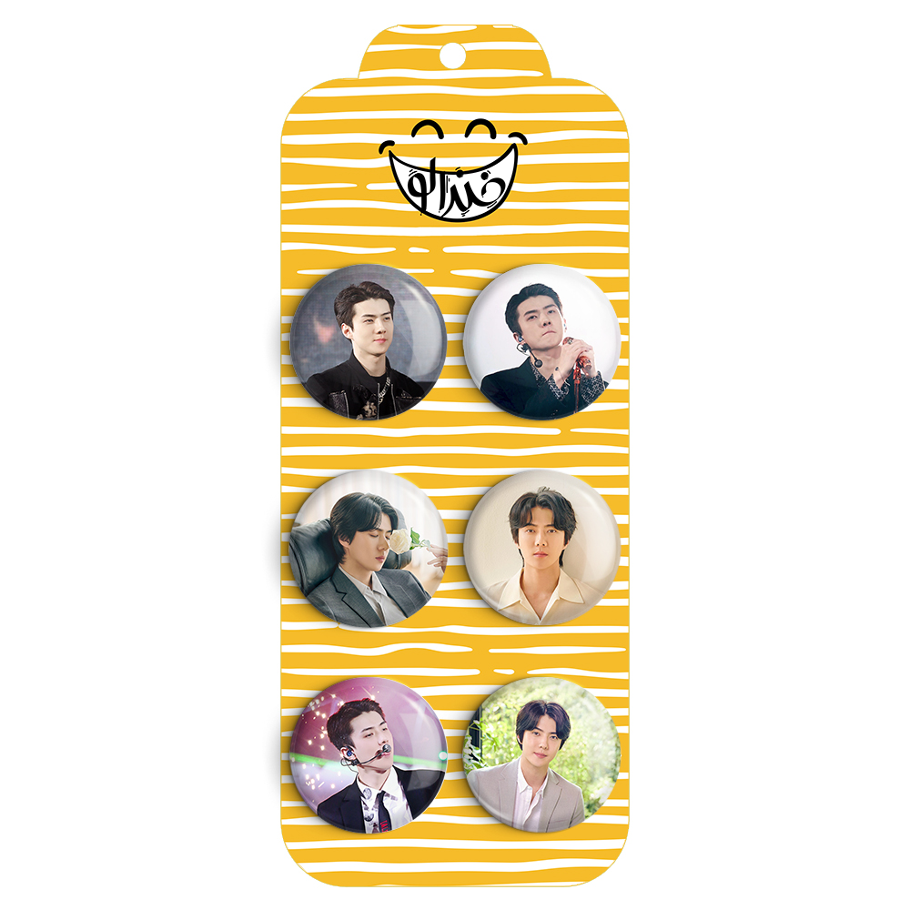 مجموعه 6 عددی پیکسل خندالو طرح سهون گروه EXO با روکش سلفون حرارتی براق ضدخش و قطعه پشتی رنگی تولید شده است. قطعات پشتی از میان 6 رنگ سفید، مشکی، صورتی، زرد، آبی و قرمز که با توجه به نوع و رنگبندی طرح روی پیکسل انتخاب شده اند تولید می شود و در هر بسته بندی مطابق عکس محصول می باشد.