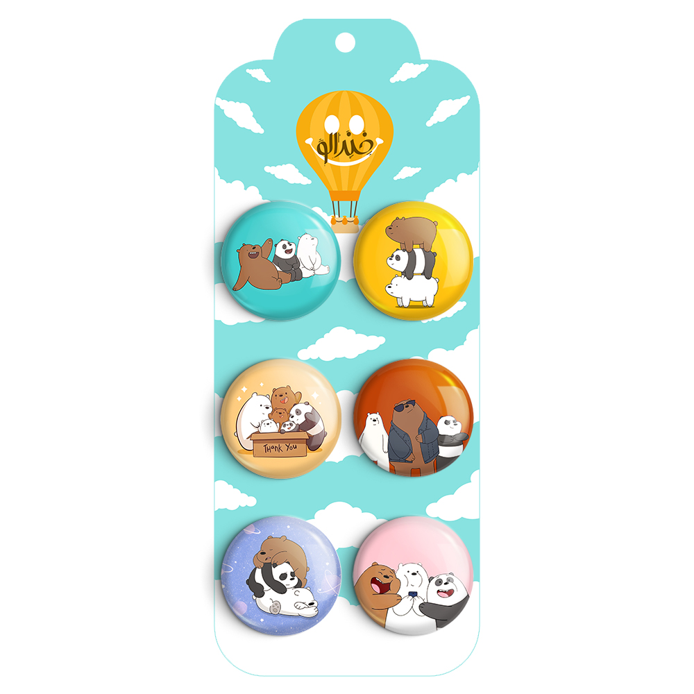 مجموعه 6 عددی پیکسل خندالو طرح سه خرس کله پوک با روکش سلفون حرارتی براق ضدخش و قطعه پشتی رنگی تولید شده است. قطعات پشتی از میان 6 رنگ سفید، مشکی، صورتی، زرد، آبی و قرمز که با توجه به نوع و رنگبندی طرح روی پیکسل انتخاب شده اند تولید می شود و در هر بسته بندی مطابق عکس محصول می باشد.
