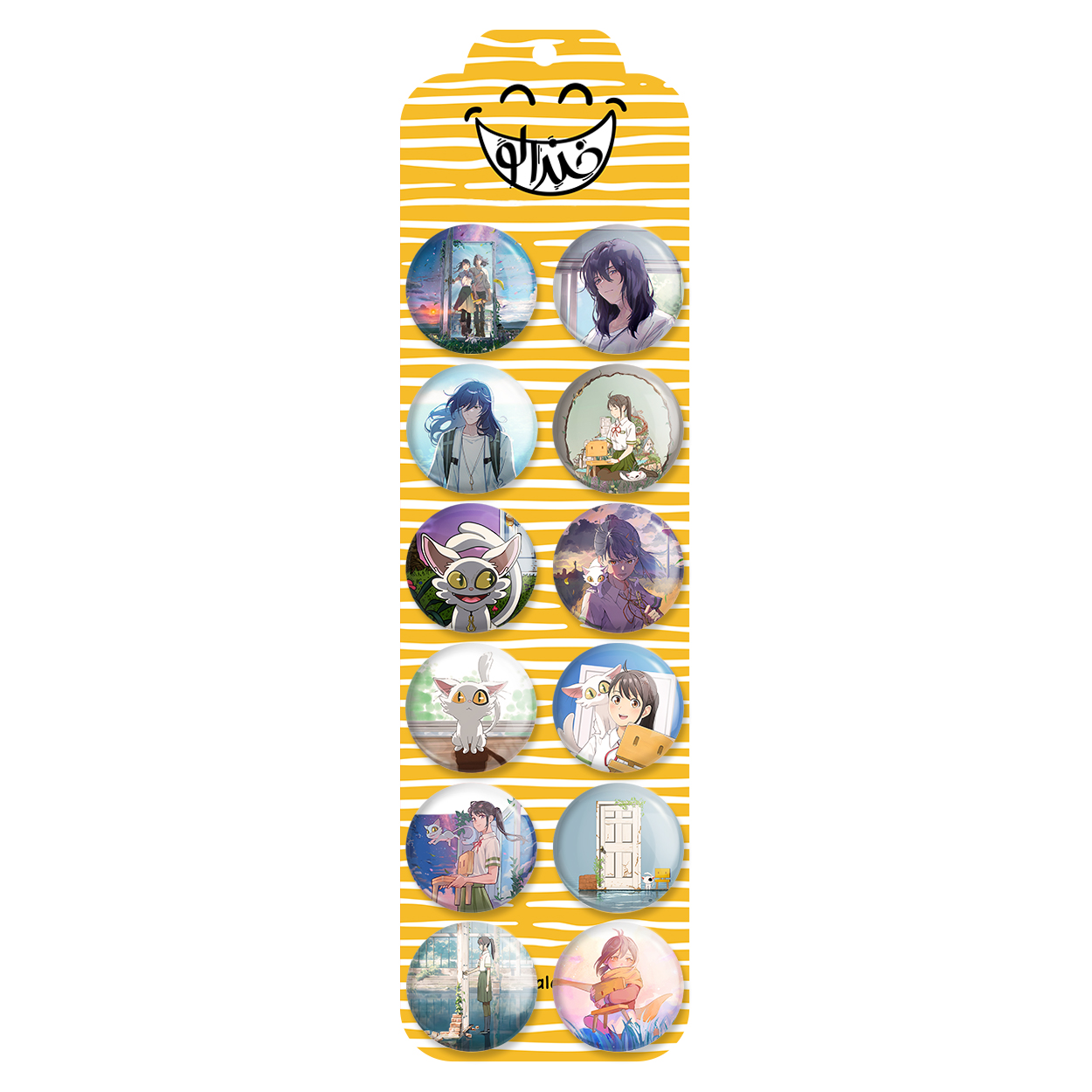 پک 12 عددی پیکسل خندالو طرح سوزومه (Suzume) با روکش سلفون حرارتی براق ضدخش و قطعه پشتی رنگی تولید شده است. قطعات پشتی از میان 6 رنگ سفید، مشکی، صورتی، زرد، آبی و قرمز که با توجه به نوع و رنگبندی طرح روی پیکسل انتخاب شده اند تولید می شود و در هر بسته بندی مطابق عکس محصول می باشد. قطعات پلاستیکی پشت پیکسل با سوزن یک تکه ثابت و بدون لغزش و جا به جایی، ایستایی بسیار بهتری نسبت به پشتی فلزی پیکسل دارند که این مهم در تولید این محصول نیز رعایت شده است.