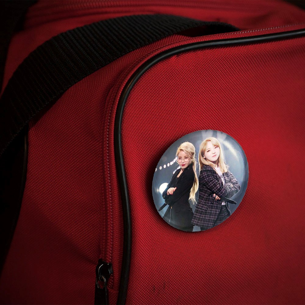 پیکسل 44 میلی متری سولار و مونبیول گروه مامامو Mamamoo خندالو با روکش سلفون حرارتی مات مخملی ضدخش و قطعه پشتی رنگی تولید شده است.پلاستیکی پشت پیکسل با سوزن یک تکه ثابت و بدون لغزش و جا به جایی، ایستایی بسیار بهتری نسبت به پشتی فلزی پیکسل دارند که این مهم در تولید این محصول نیز رعایت شده است.