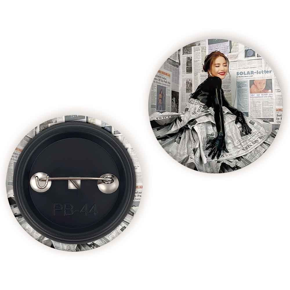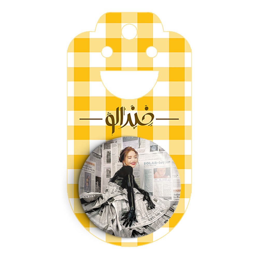 پیکسل 44 میلی متری سولار گروه مامامو Mamamoo خندالو با روکش سلفون حرارتی مات مخملی ضدخش و قطعه پشتی رنگی تولید شده است.پلاستیکی پشت پیکسل با سوزن یک تکه ثابت و بدون لغزش و جا به جایی، ایستایی بسیار بهتری نسبت به پشتی فلزی پیکسل دارند که این مهم در تولید این محصول نیز رعایت شده است.