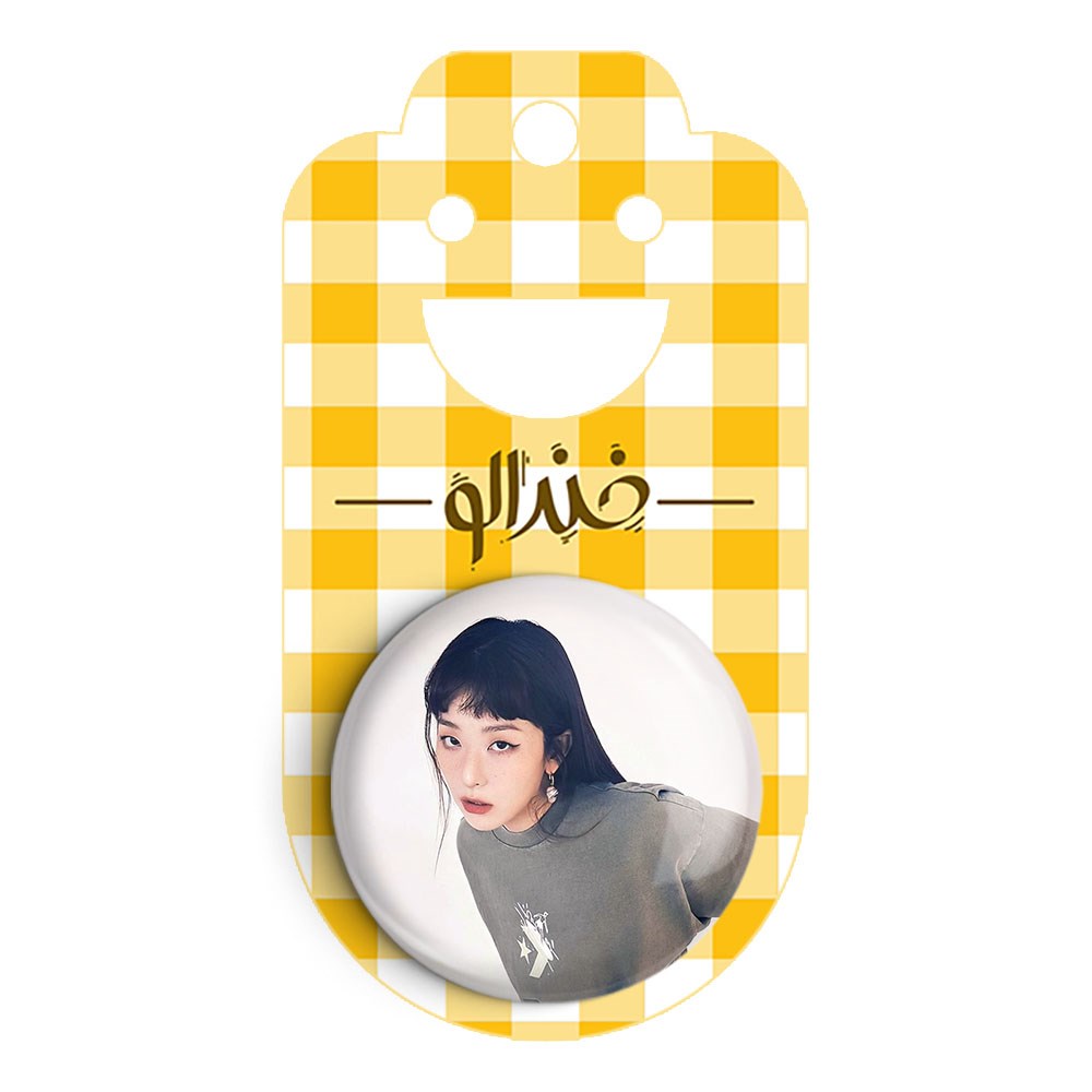 پیکسل 44 میلی متری سولگی گروه رد ولوت Red Velvet خندالو با روکش سلفون حرارتی مات مخملی ضدخش و قطعه پشتی رنگی تولید شده است.پلاستیکی پشت پیکسل با سوزن یک تکه ثابت و بدون لغزش و جا به جایی، ایستایی بسیار بهتری نسبت به پشتی فلزی پیکسل دارند که این مهم در تولید این محصول نیز رعایت شده است.