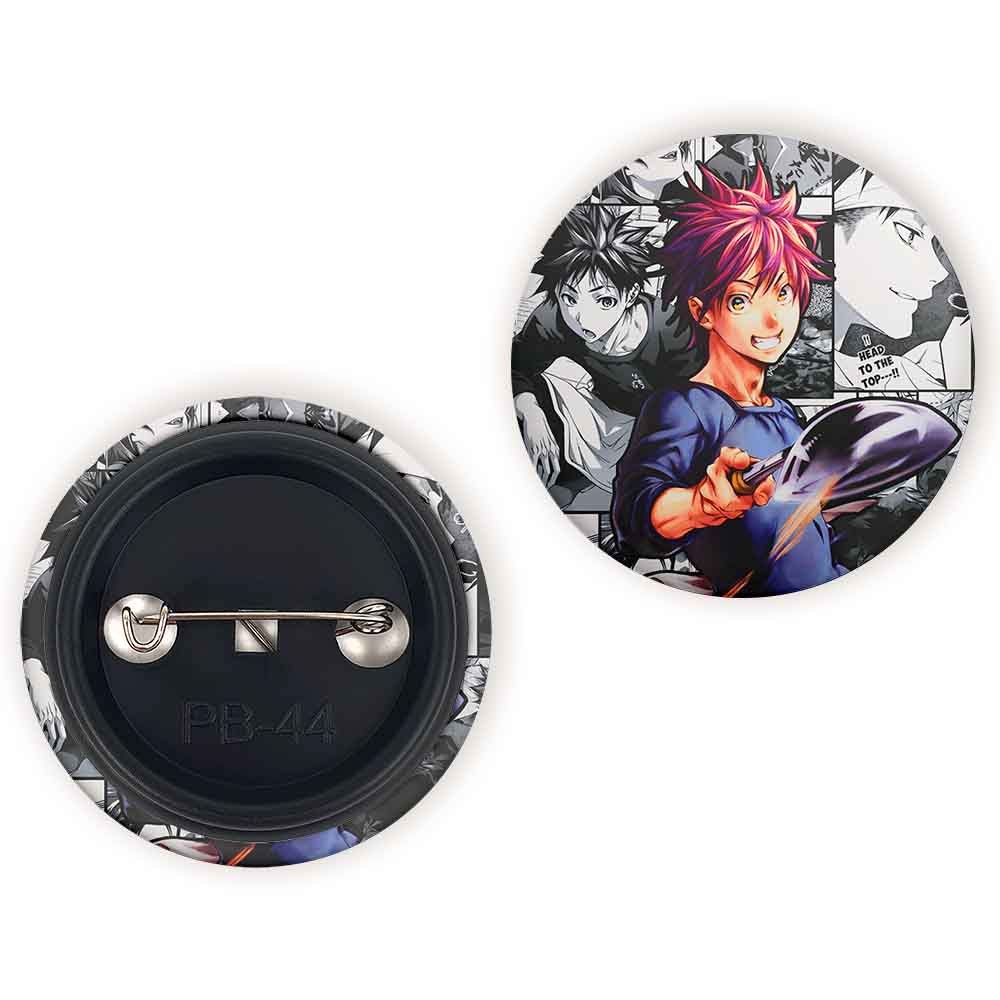 پیکسل 44 میلی متری سوما انیمه جنگ غذاها Food Wars خندالو با روکش سلفون حرارتی مات مخملی ضدخش و قطعه پشتی رنگی تولید شده است.پلاستیکی پشت پیکسل با سوزن یک تکه ثابت و بدون لغزش و جا به جایی، ایستایی بسیار بهتری نسبت به پشتی فلزی پیکسل دارند که این مهم در تولید این محصول نیز رعایت شده است.