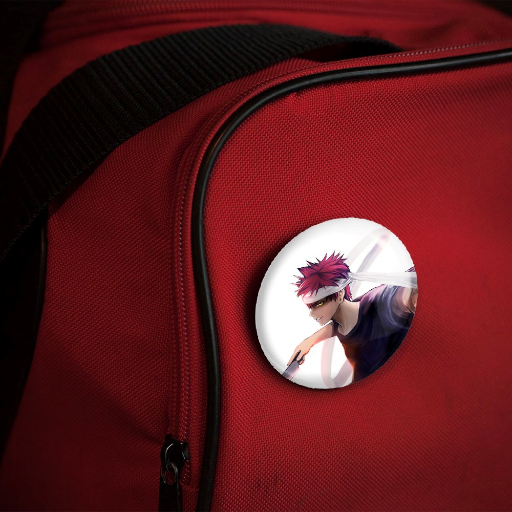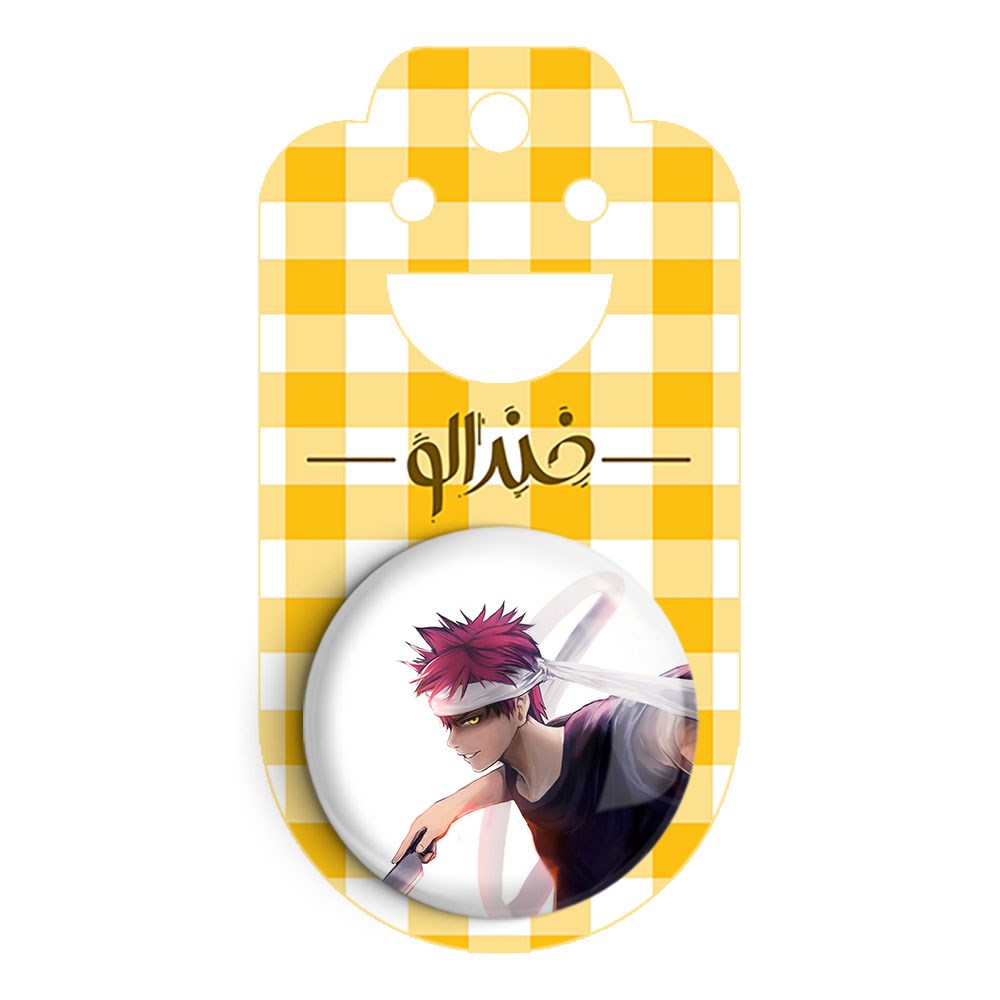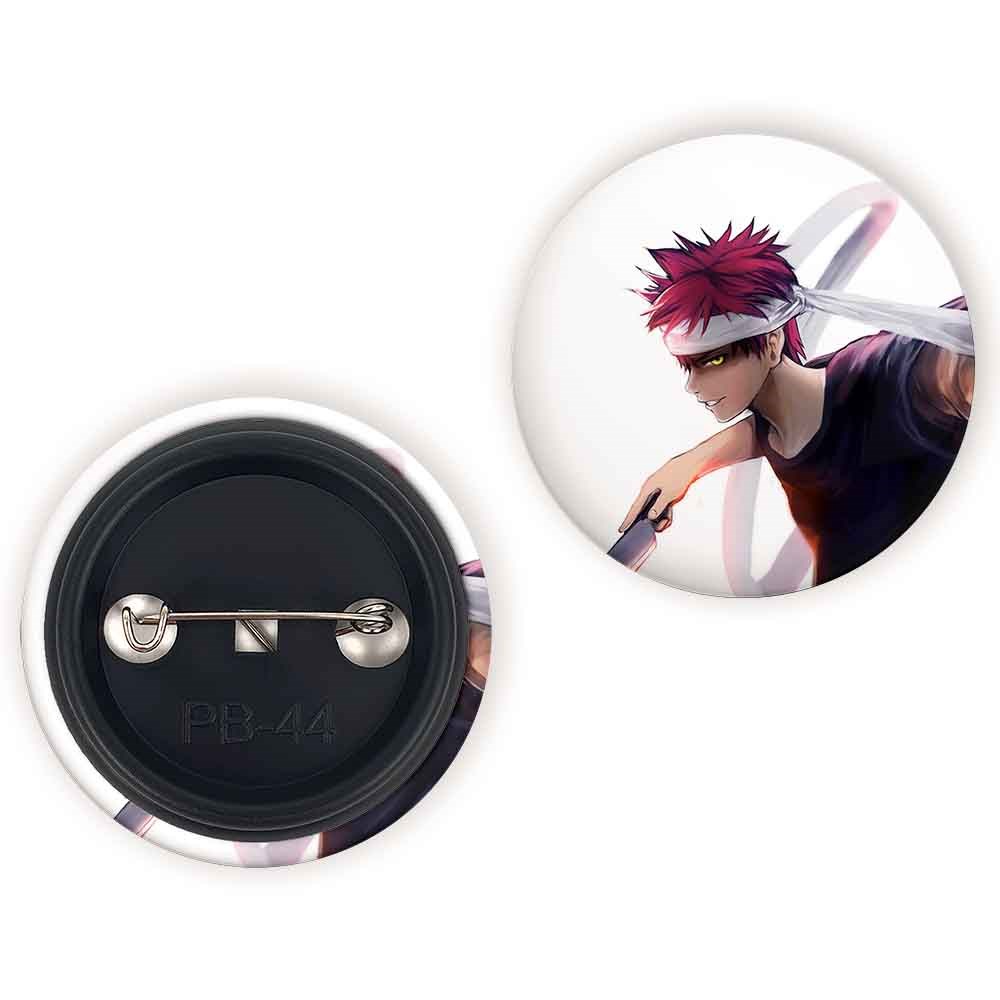پیکسل 44 میلی متری سوما انیمه جنگ غذاها Food Wars خندالو با روکش سلفون حرارتی مات مخملی ضدخش و قطعه پشتی رنگی تولید شده است.پلاستیکی پشت پیکسل با سوزن یک تکه ثابت و بدون لغزش و جا به جایی، ایستایی بسیار بهتری نسبت به پشتی فلزی پیکسل دارند که این مهم در تولید این محصول نیز رعایت شده است.
