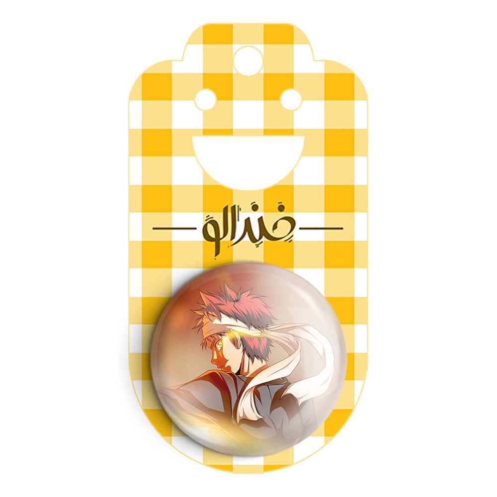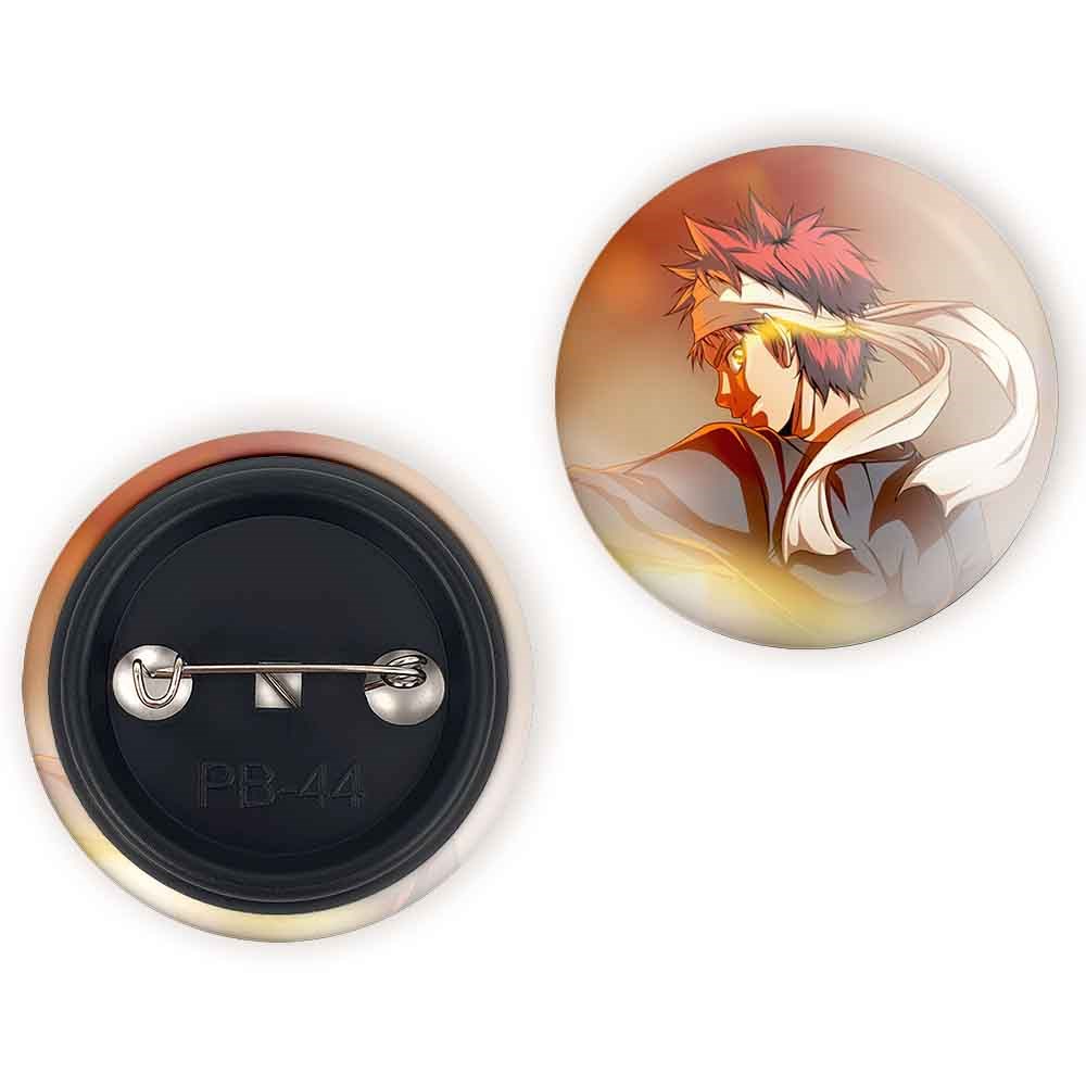 پیکسل 44 میلی متری سوما انیمه جنگ غذاها Food Wars خندالو با روکش سلفون حرارتی مات مخملی ضدخش و قطعه پشتی رنگی تولید شده است.پلاستیکی پشت پیکسل با سوزن یک تکه ثابت و بدون لغزش و جا به جایی، ایستایی بسیار بهتری نسبت به پشتی فلزی پیکسل دارند که این مهم در تولید این محصول نیز رعایت شده است.