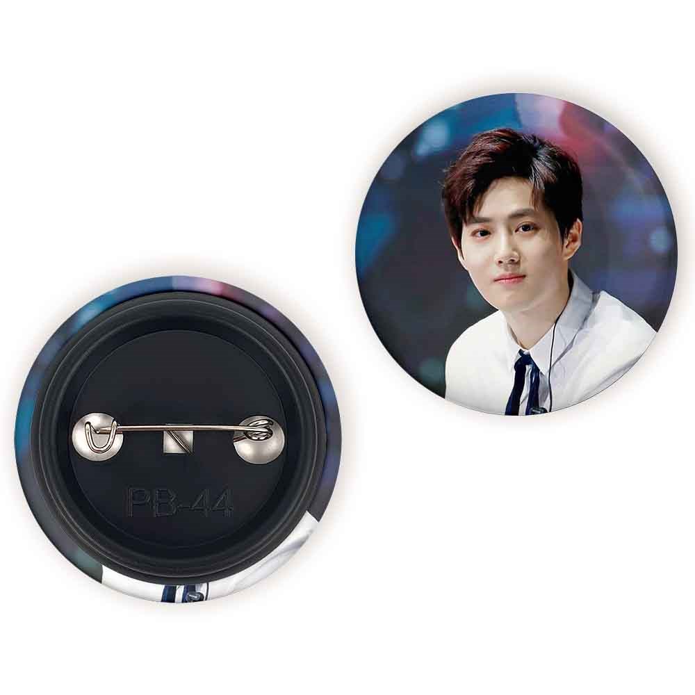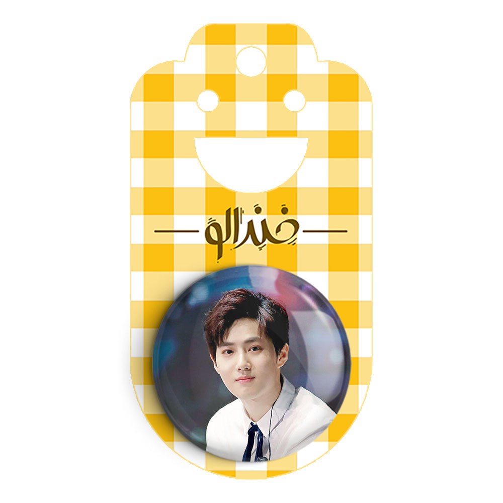 پیکسل 44 میلی متری سوهو گروه اکسو EXO خندالو با روکش سلفون حرارتی مات مخملی ضدخش و قطعه پشتی رنگی تولید شده است.پلاستیکی پشت پیکسل با سوزن یک تکه ثابت و بدون لغزش و جا به جایی، ایستایی بسیار بهتری نسبت به پشتی فلزی پیکسل دارند که این مهم در تولید این محصول نیز رعایت شده است.