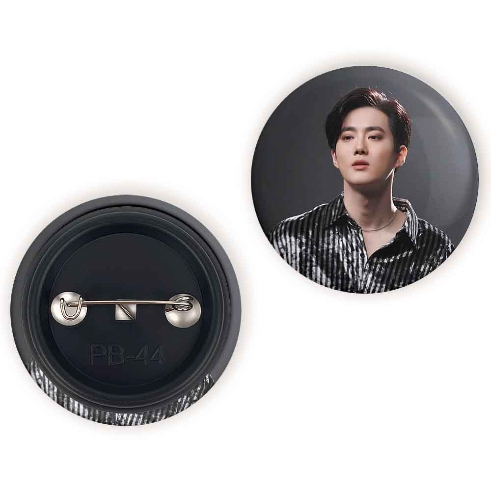 پیکسل 44 میلی متری سوهو گروه اکسو EXO خندالو با روکش سلفون حرارتی مات مخملی ضدخش و قطعه پشتی رنگی تولید شده است.پلاستیکی پشت پیکسل با سوزن یک تکه ثابت و بدون لغزش و جا به جایی، ایستایی بسیار بهتری نسبت به پشتی فلزی پیکسل دارند که این مهم در تولید این محصول نیز رعایت شده است.